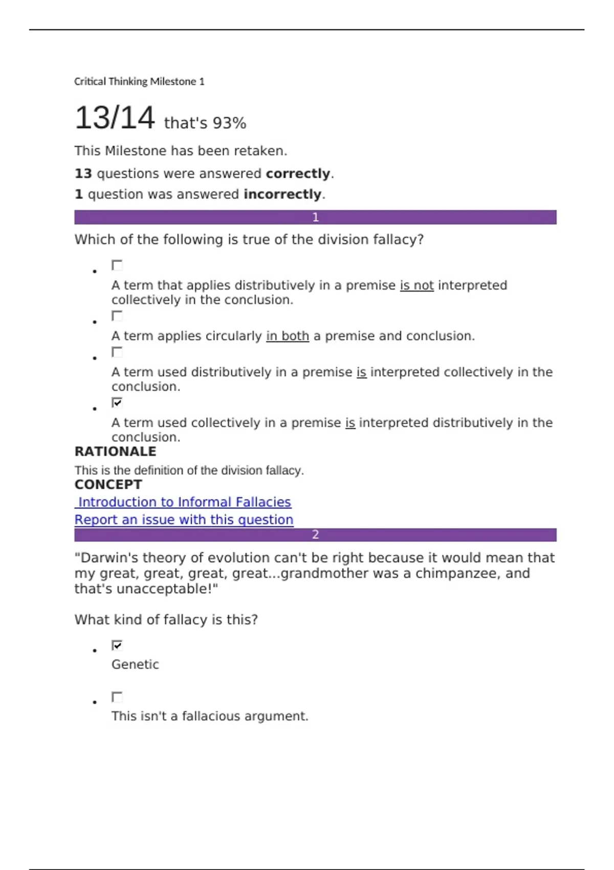 1 question was answered incorrectly.