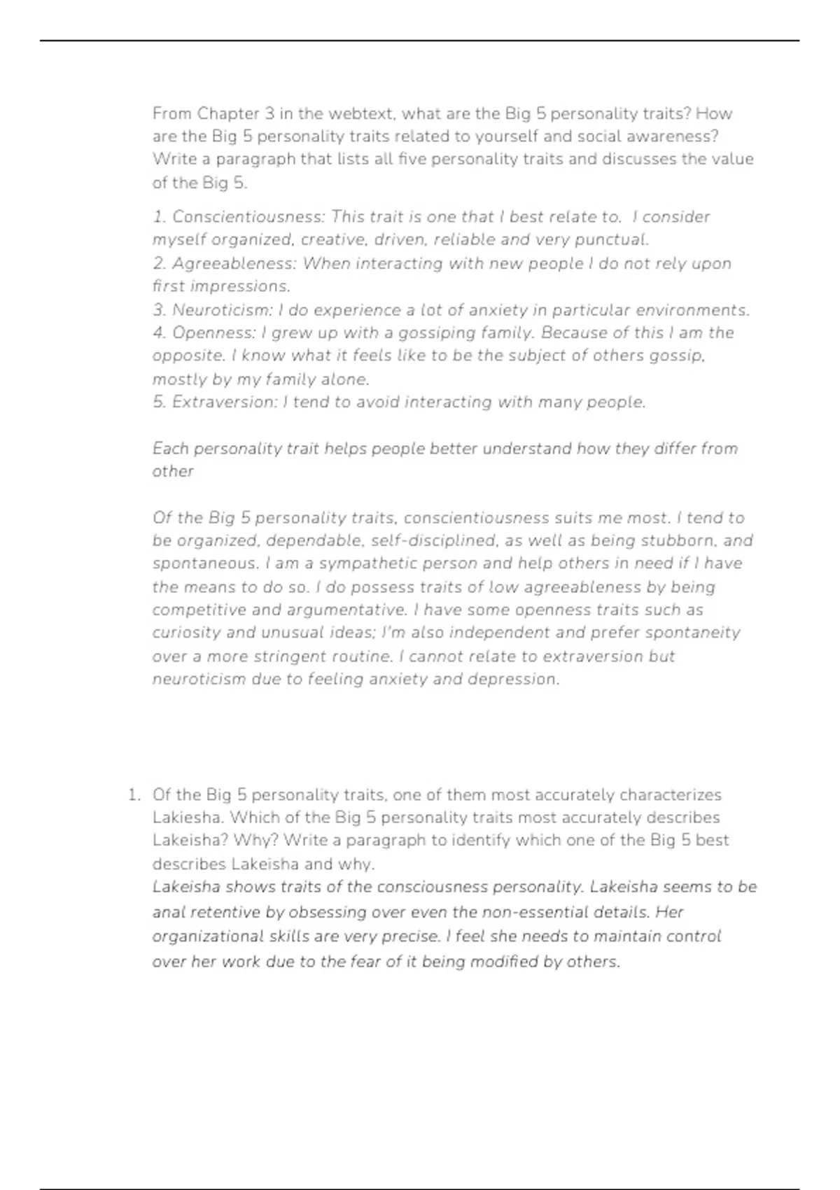 1. Of the Big 5 personality traits, one of them most accurately characterizes