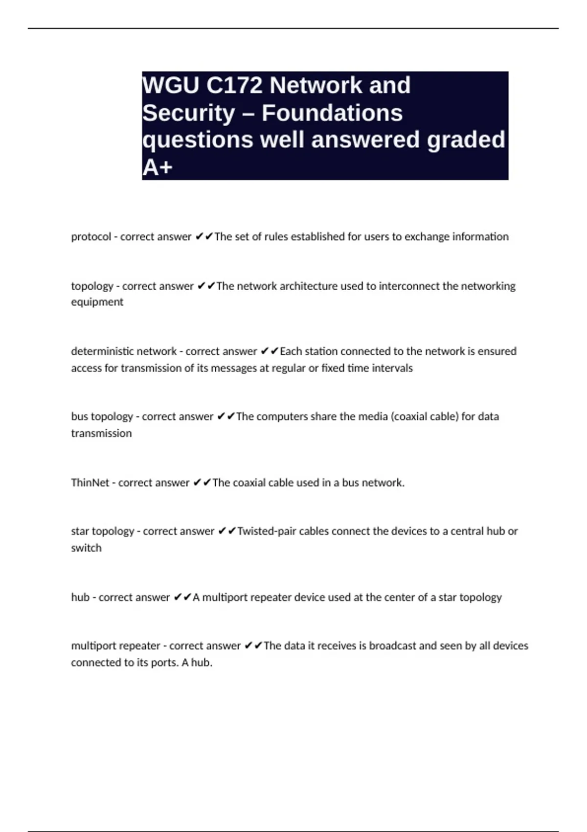 Ethernet - correct answer ✔✔LAN protocol created in 1972 and standardized in 1980 using