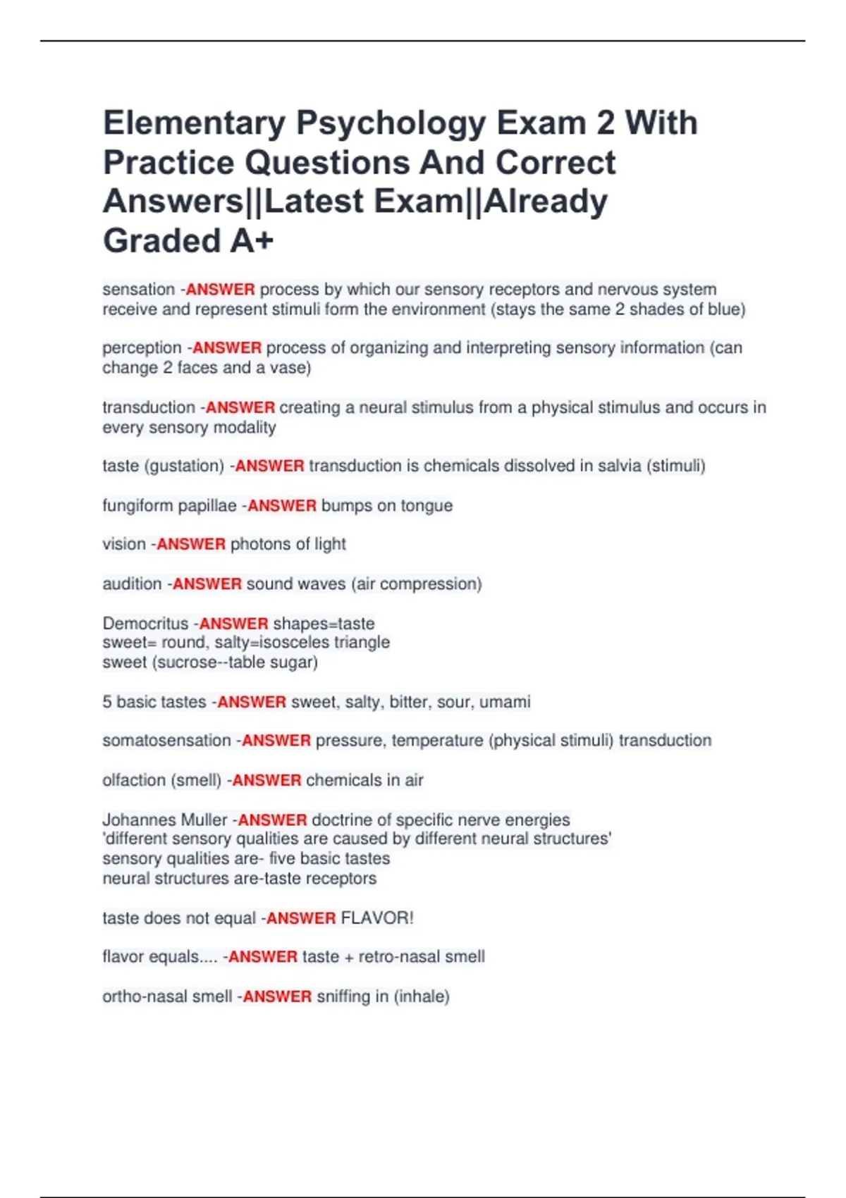 taste does not equal -ANSWER FLAVOR!