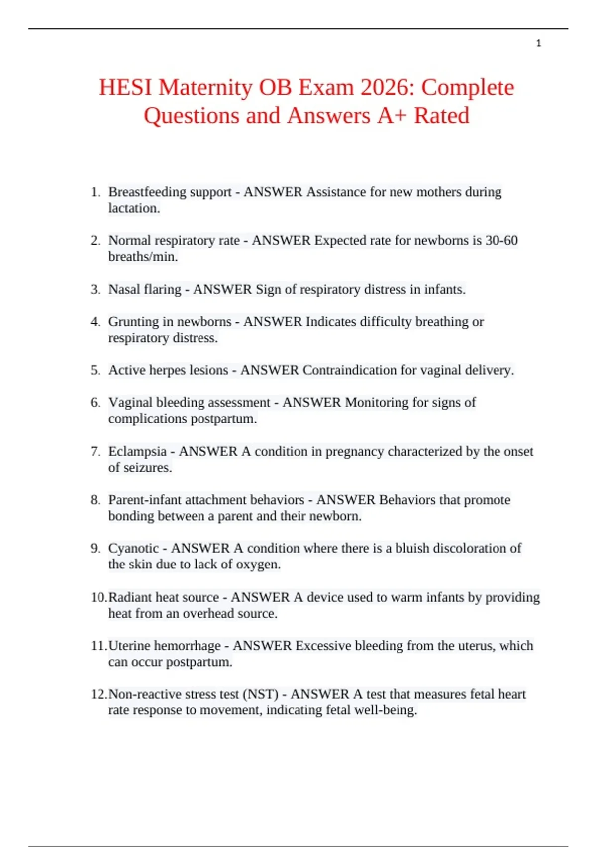 HESI Maternity OB Exam 2026: Complete