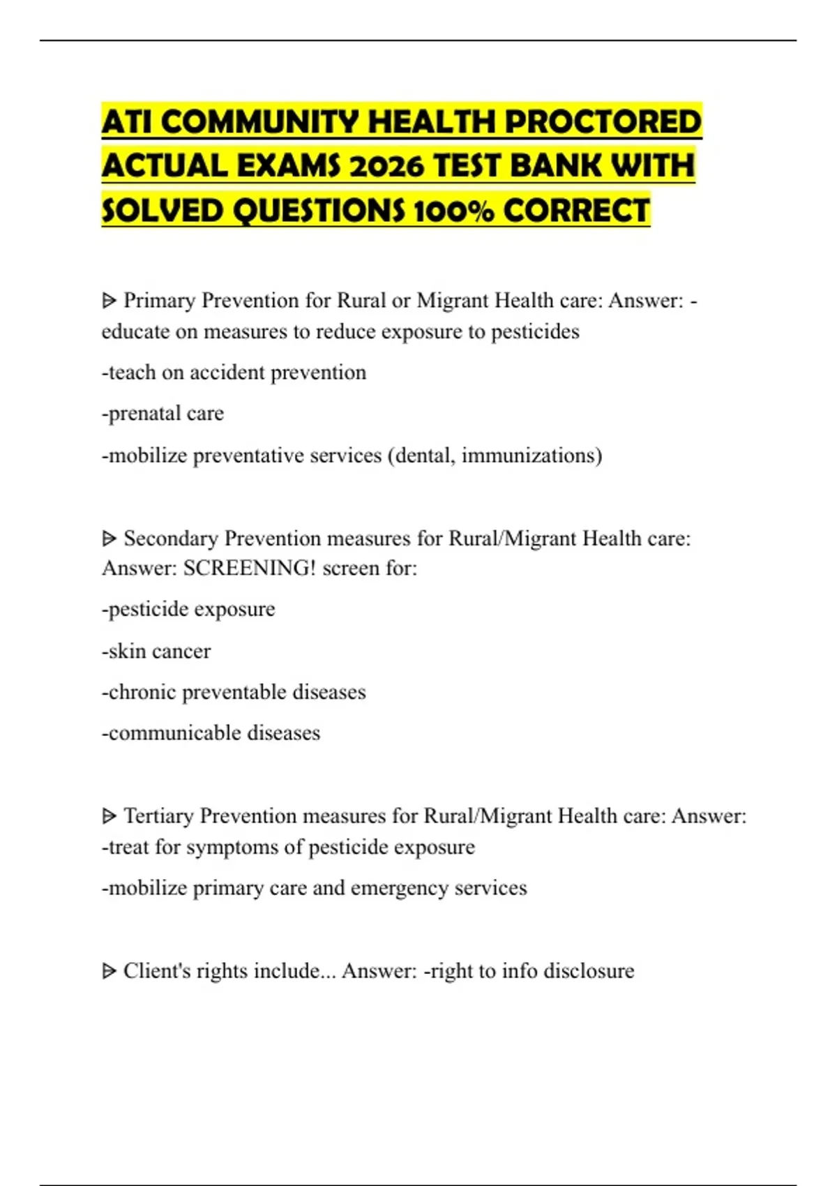 ATI COMMUNITY HEALTH PROCTORED ACTUAL EXAMS 2026 TEST BANK WITH SOLVED QUESTIONS 100% CORRECT