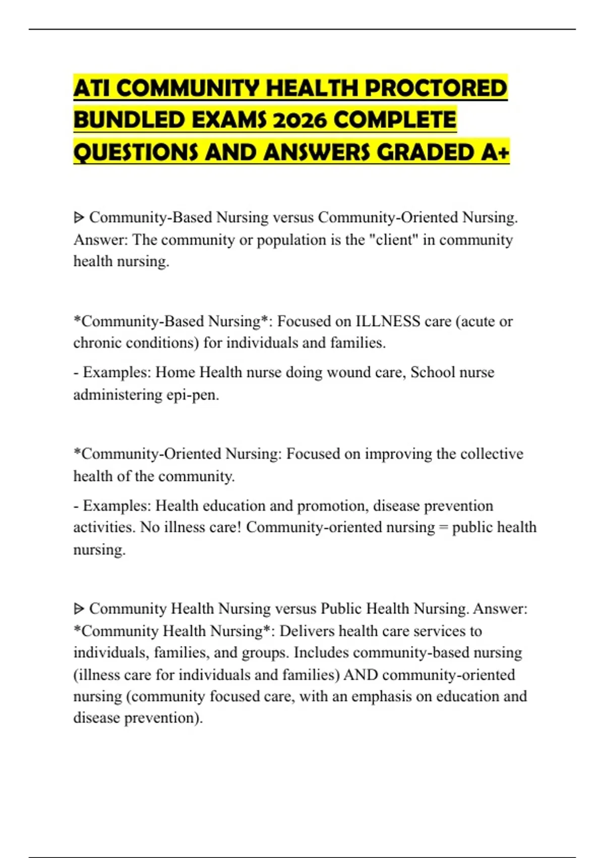 ATI COMMUNITY HEALTH PROCTORED BUNDLED EXAMS 2026 COMPLETE QUESTIONS AND ANSWERS GRADED A+