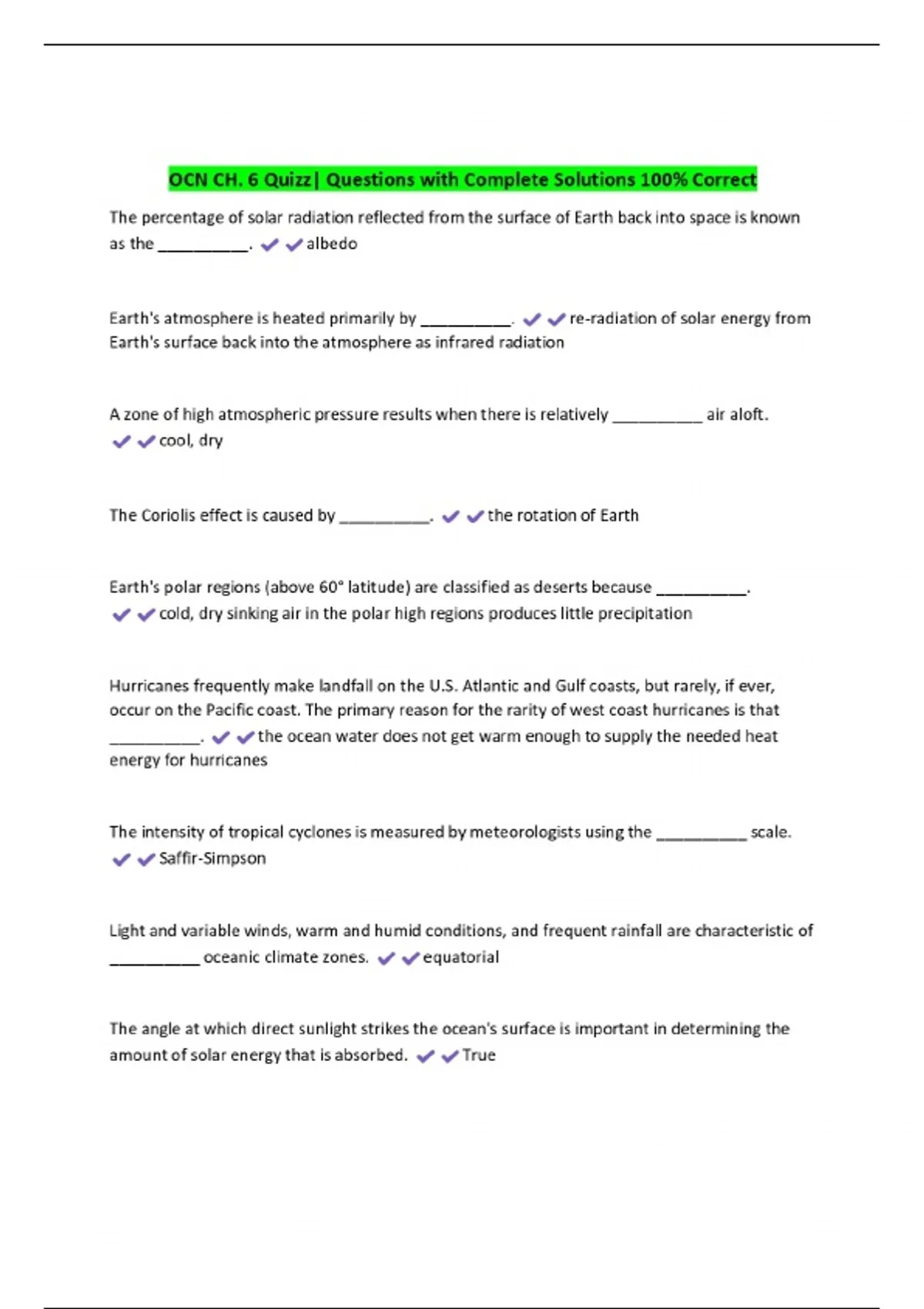 ocn ch 6 quizz questions with complete solutions