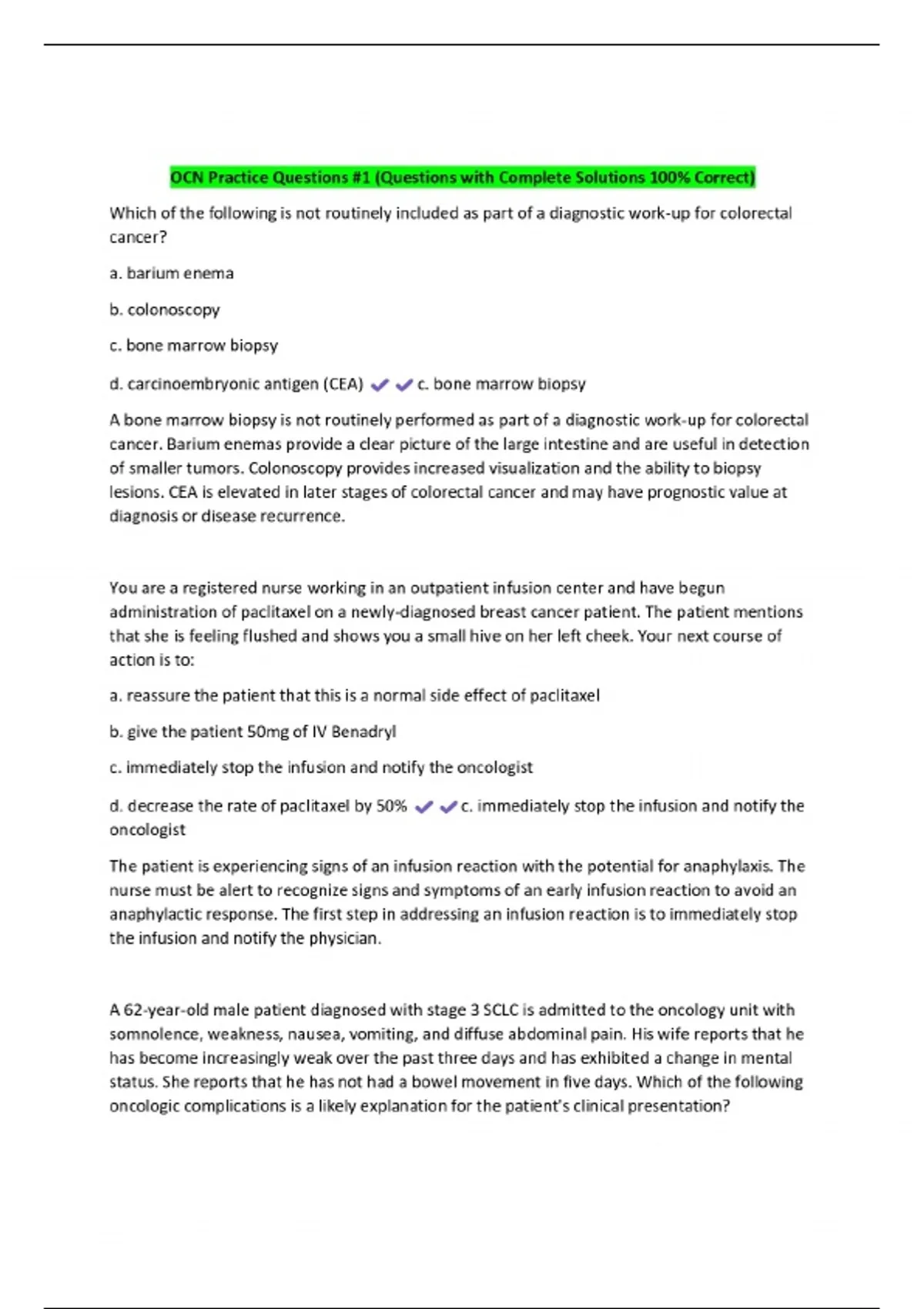 OCN Practice Questions #1 (Questions with Complete Solutions 100% Correct)