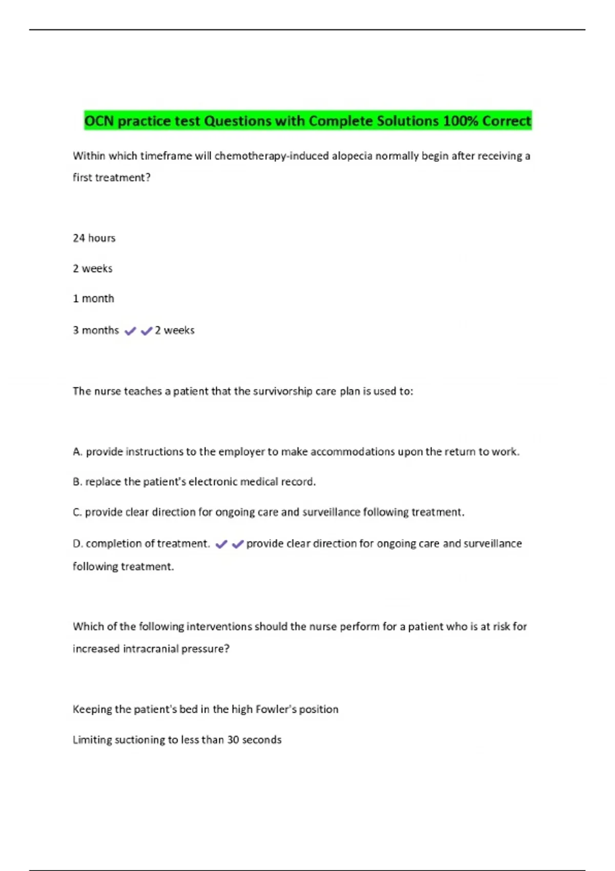 OCN practice test Questions with Complete Solutions 100% Correct