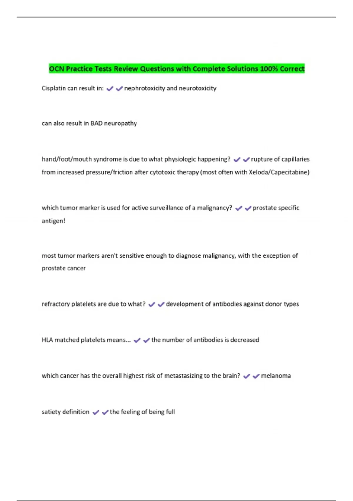 OCN Practice Tests Review Questions with Complete Solutions 100% Correct