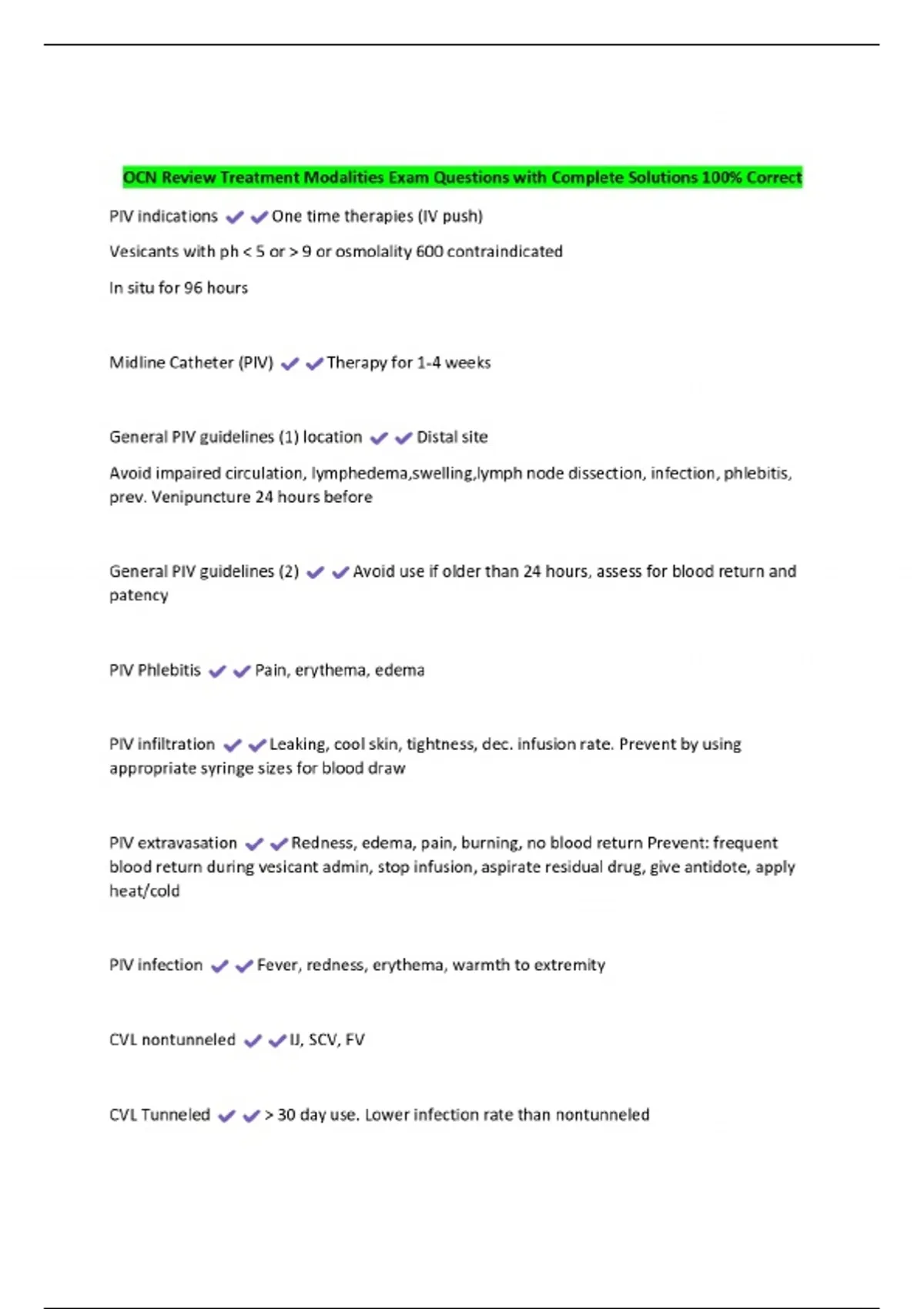 OCN Review Treatment Modalities Exam Questions with Complete Solutions 100% Correct