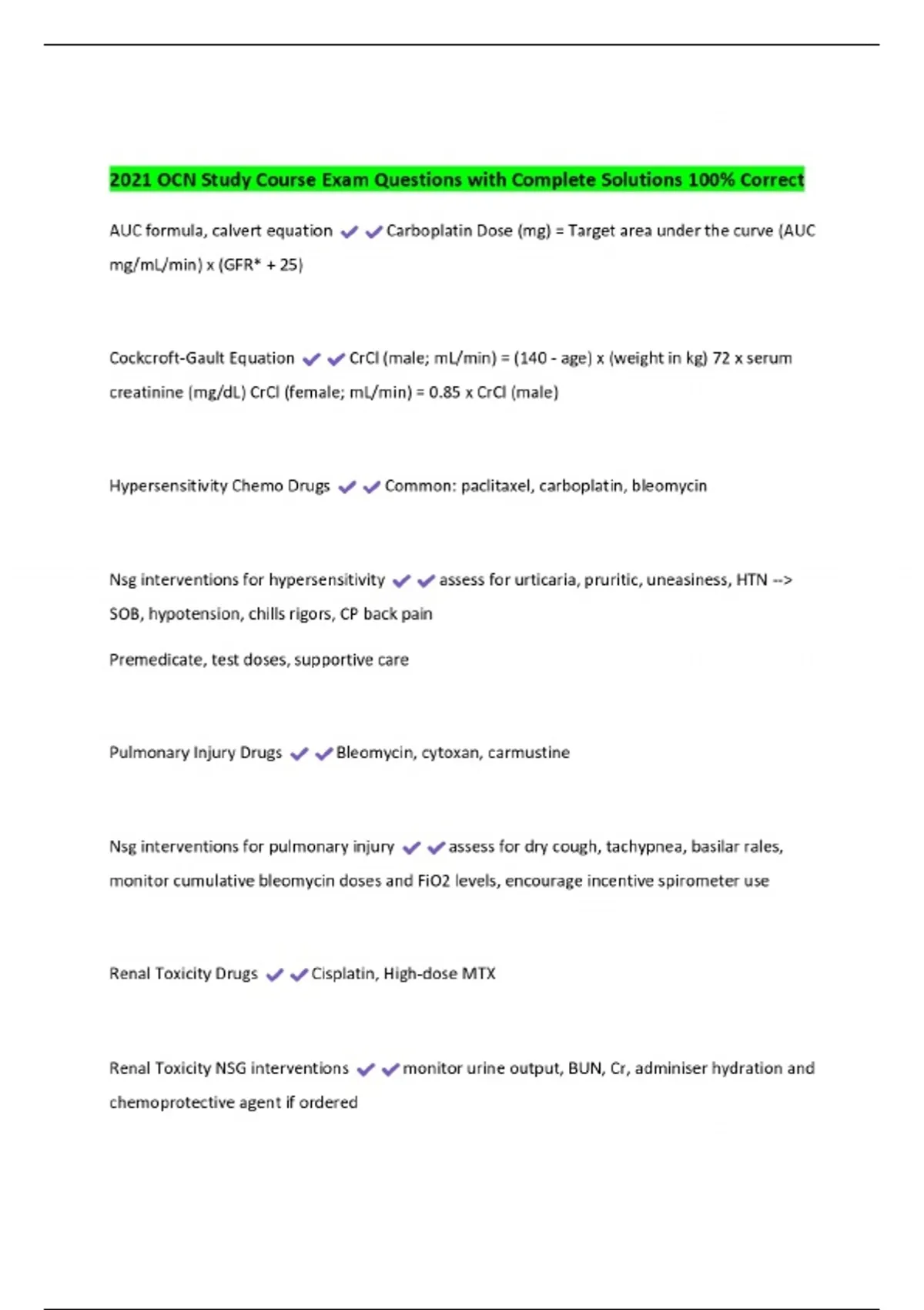 2021 OCN Study Course Exam Questions with Complete Solutions 100% Correct