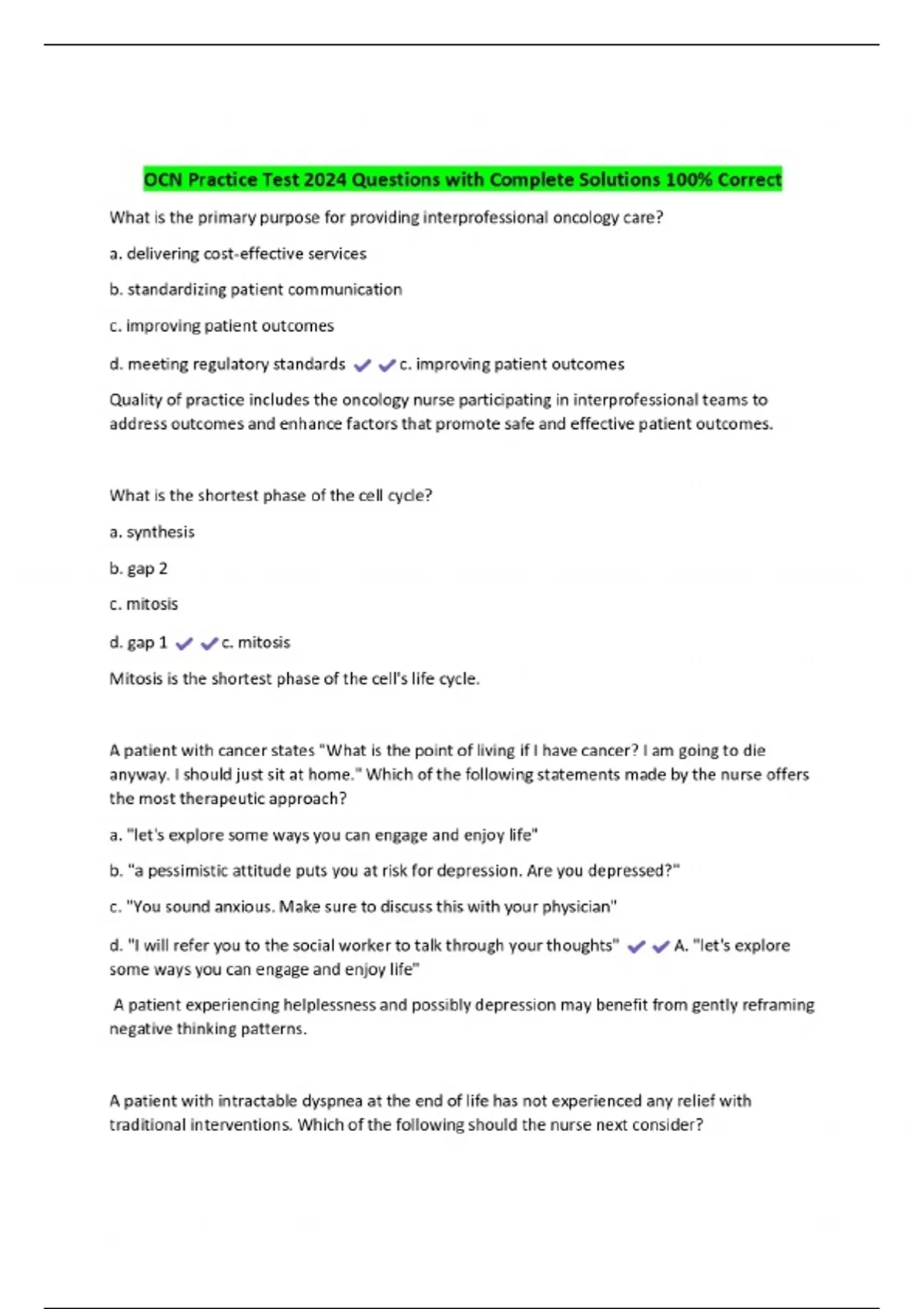 ocn practice test 2024 questions with complete sol