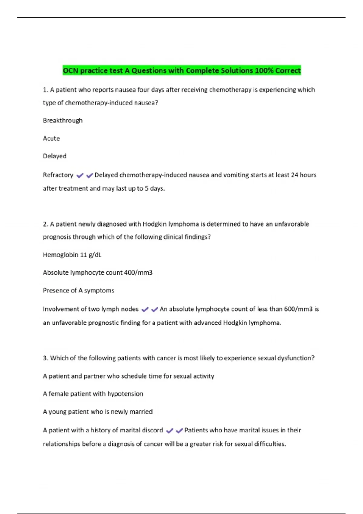 OCN practice test A Questions with Complete Solutions 100% Correct