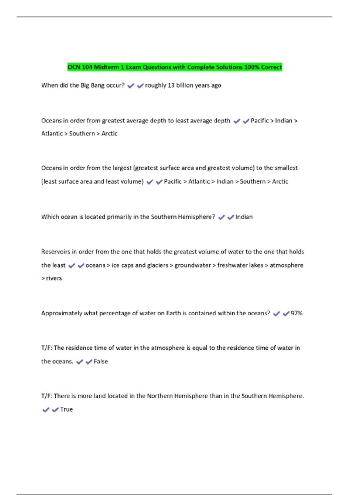 ocn 104 midterm 1 exam questions with complete sol