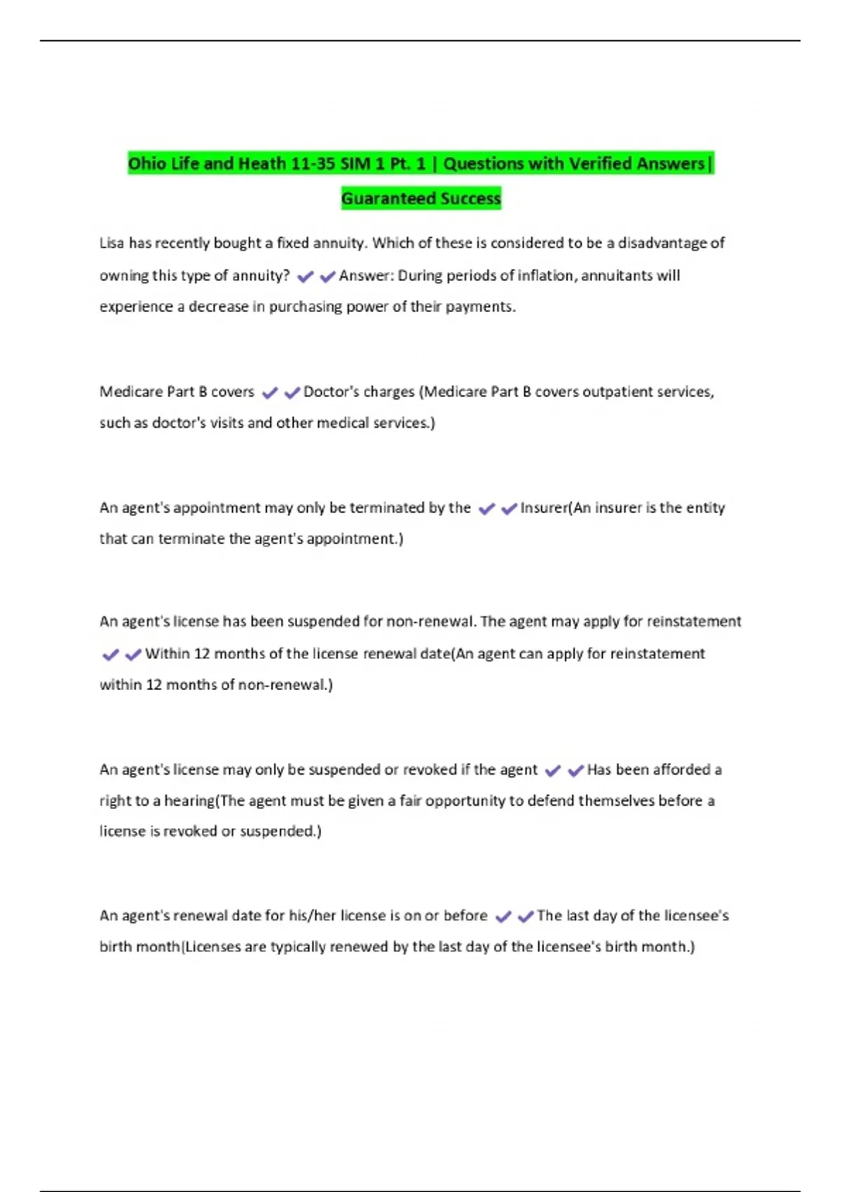 Ohio Life and Heath 11-35 SIM 1 Pt. 1 | Questions with Verified Answers| Guaranteed Success