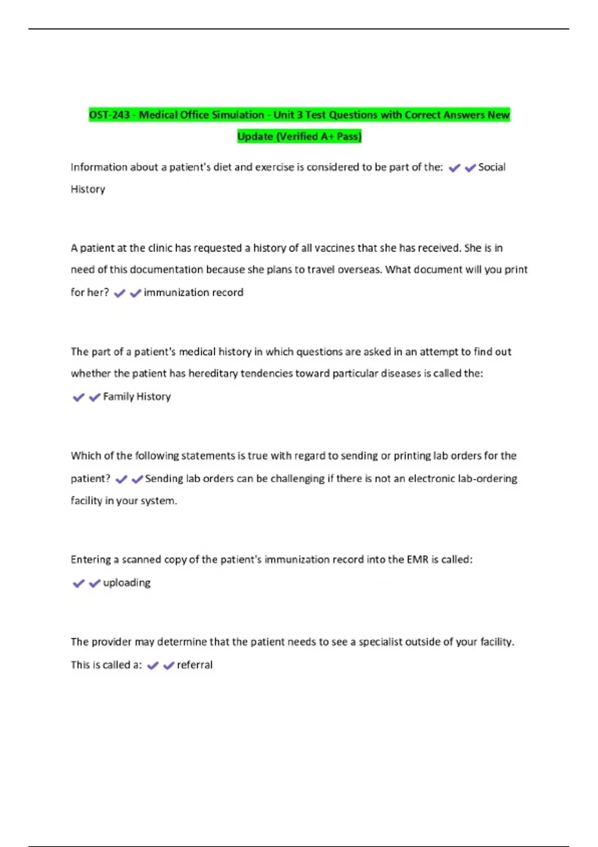 OST-243 - Medical Office Simulation - Unit 3 Test Questions with Correct Answers New Update (Verified A+ Pass)
