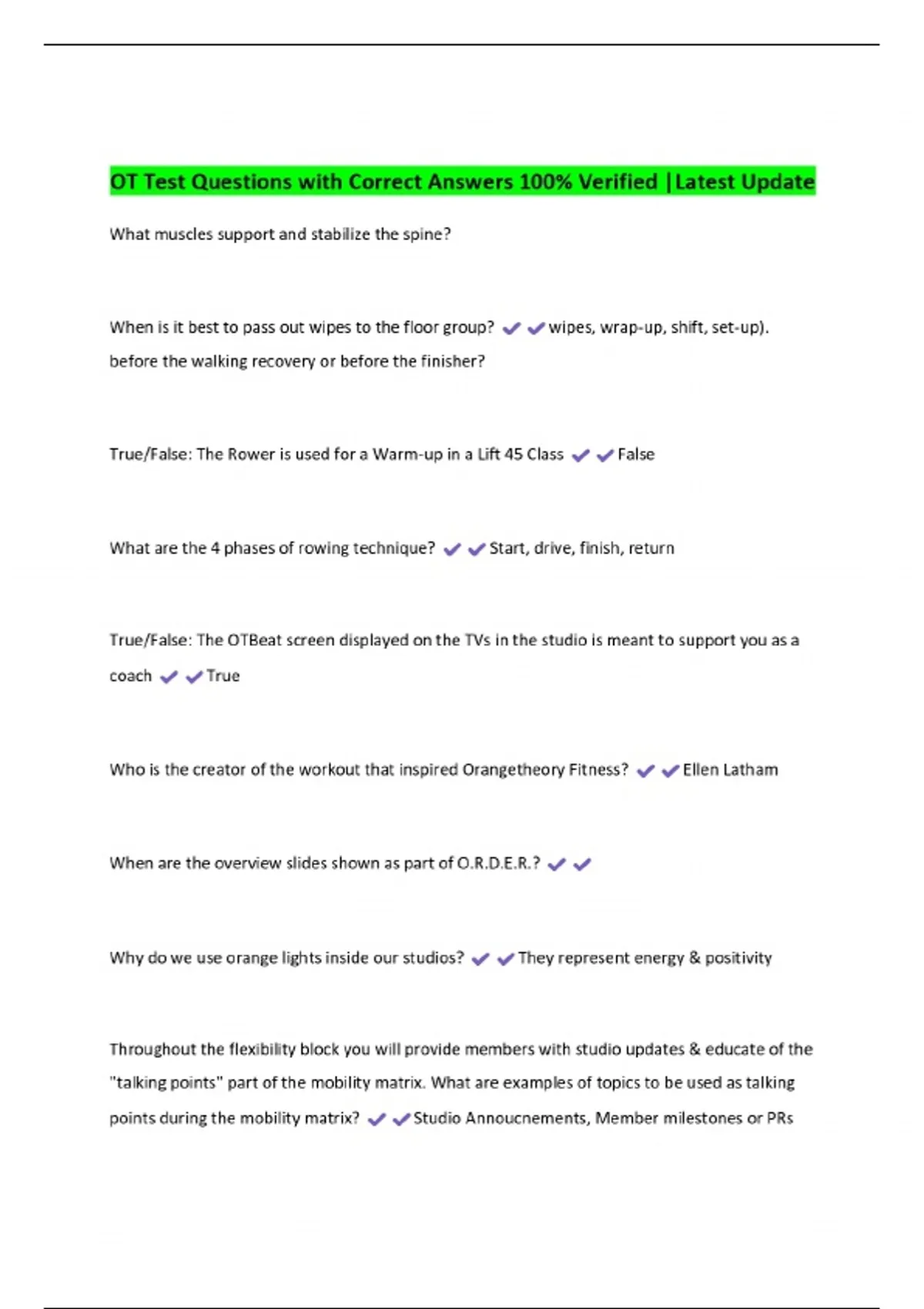 OT Test Questions with Correct Answers 100% Verified |Latest Update