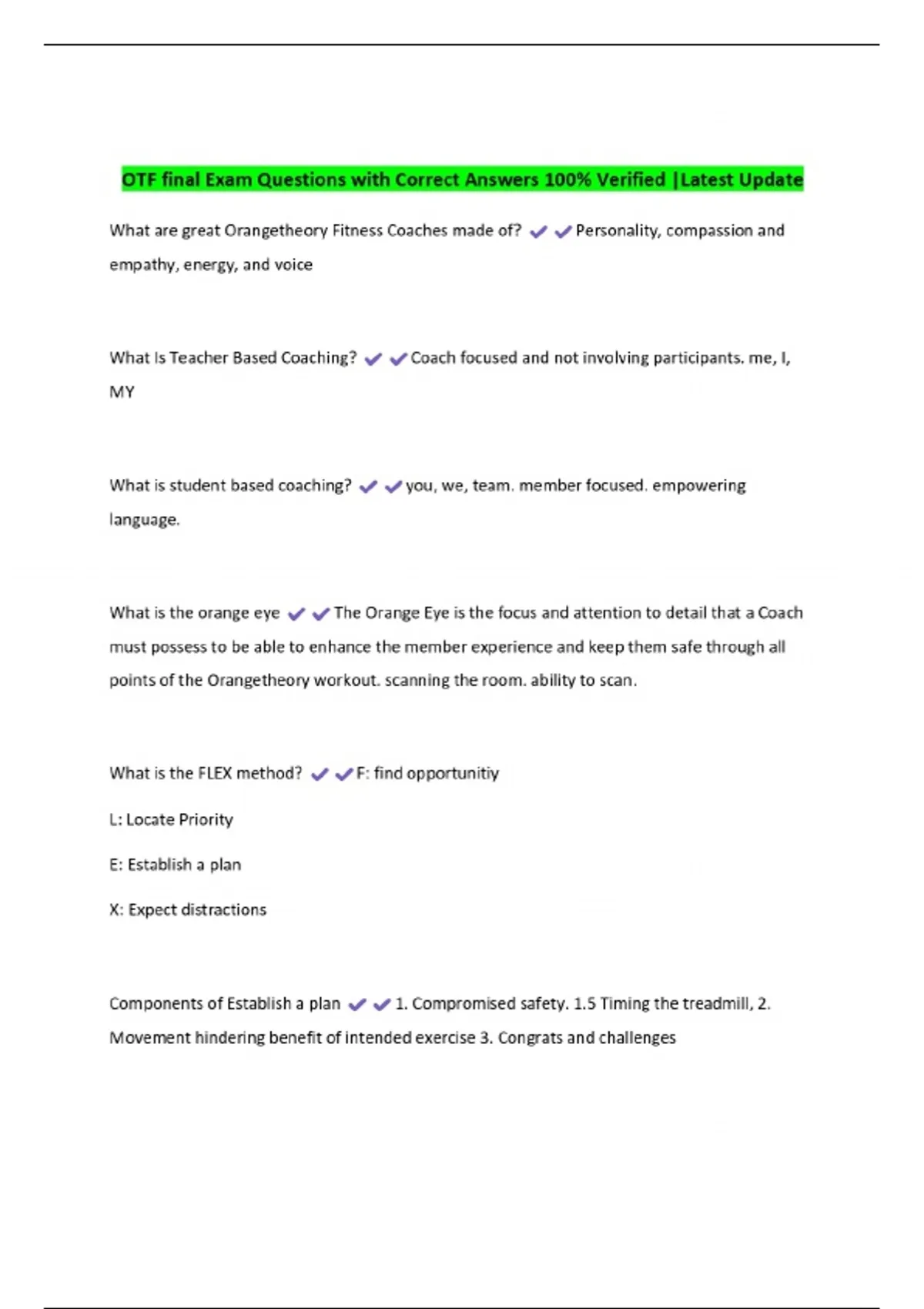 OTF final Exam Questions with Correct Answers 100% Verified |Latest Update