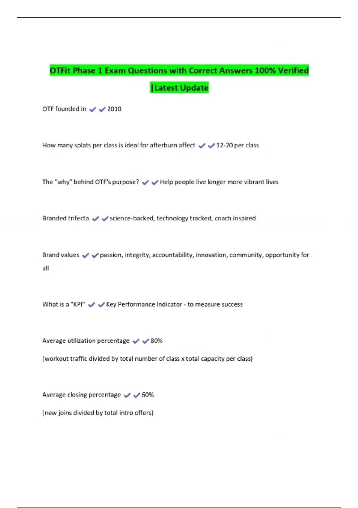 OTFit Phase 1 Exam Questions with Correct Answers 100% Verified |Latest Update