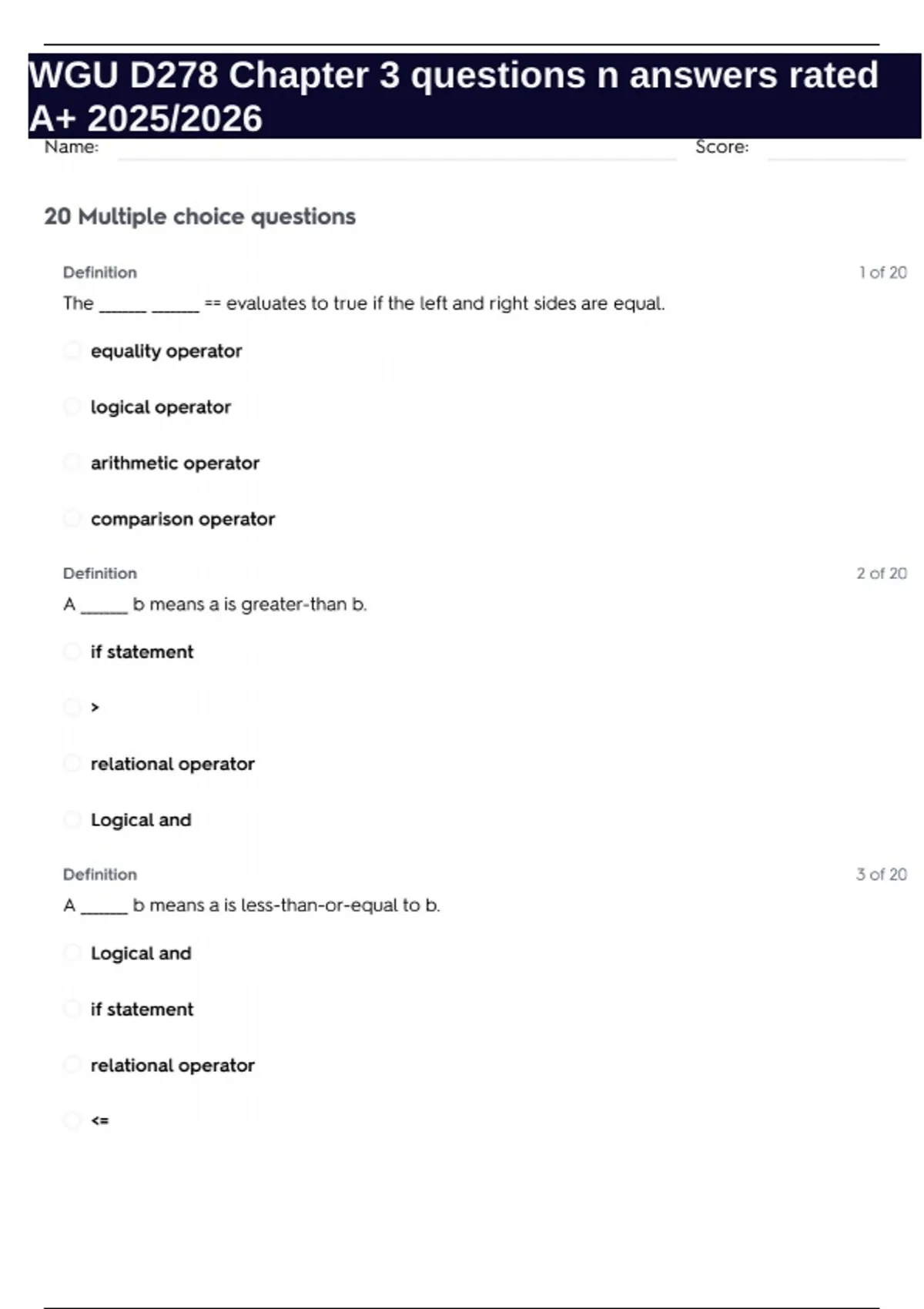 WGU D278 Chapter 3 questions n answers rated A+ 2025/2026