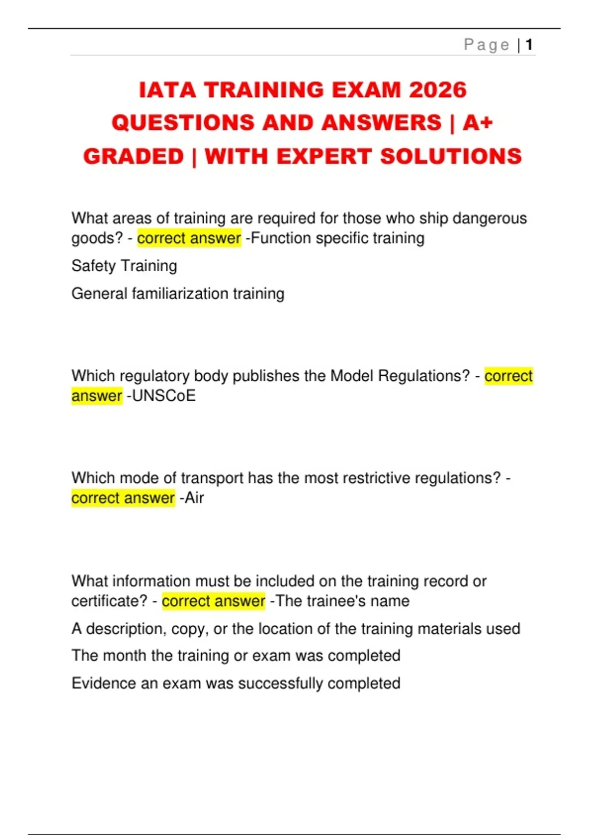 IATA TRAINING EXAM 2026