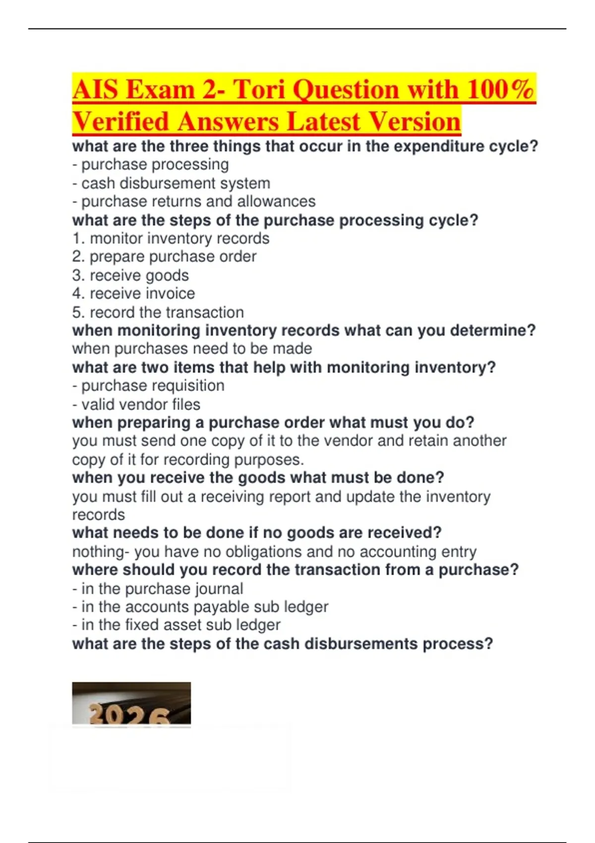 AIS Exam 2- Tori Question with 100% Verified Answers Latest Version