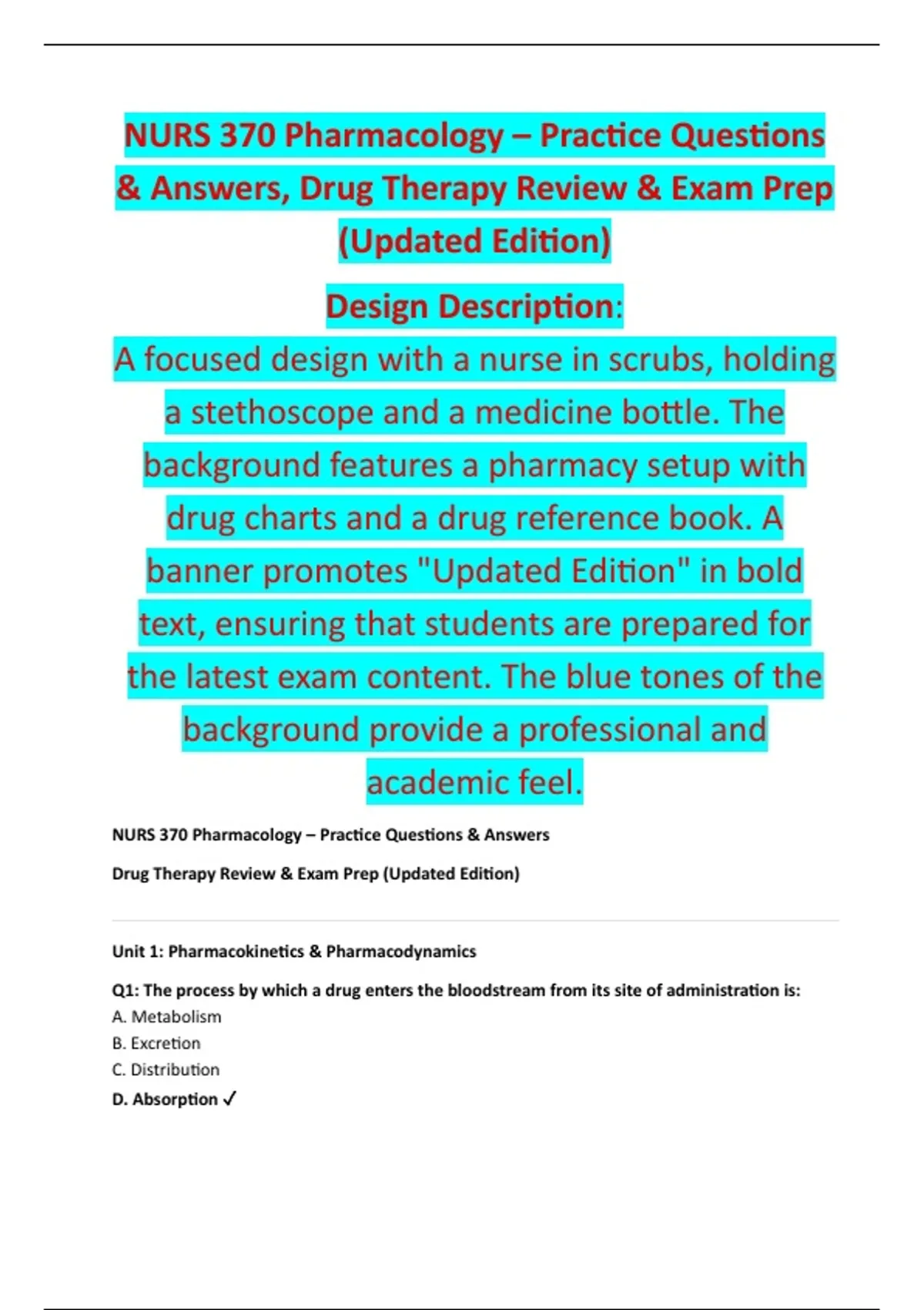 NURS 370 Pharmacology – Practice Questions & Answers
