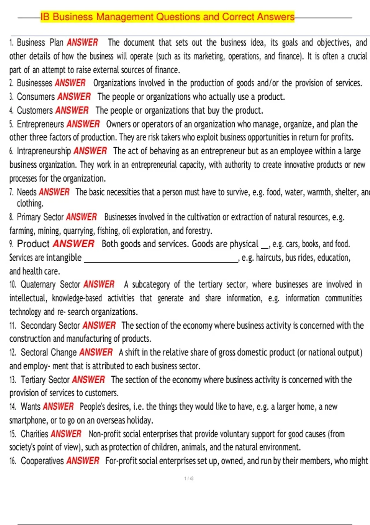 , IB Business Management Questions and Correct Answers