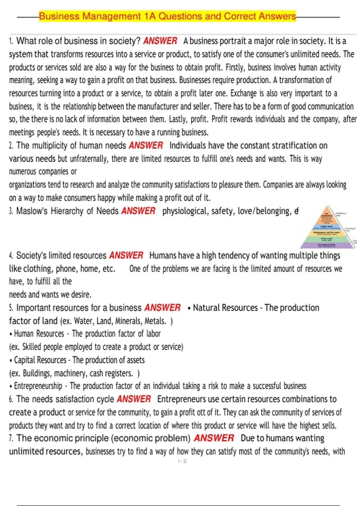 1. What role of business in society? ANSWER A business portrait a major role in society. It is a