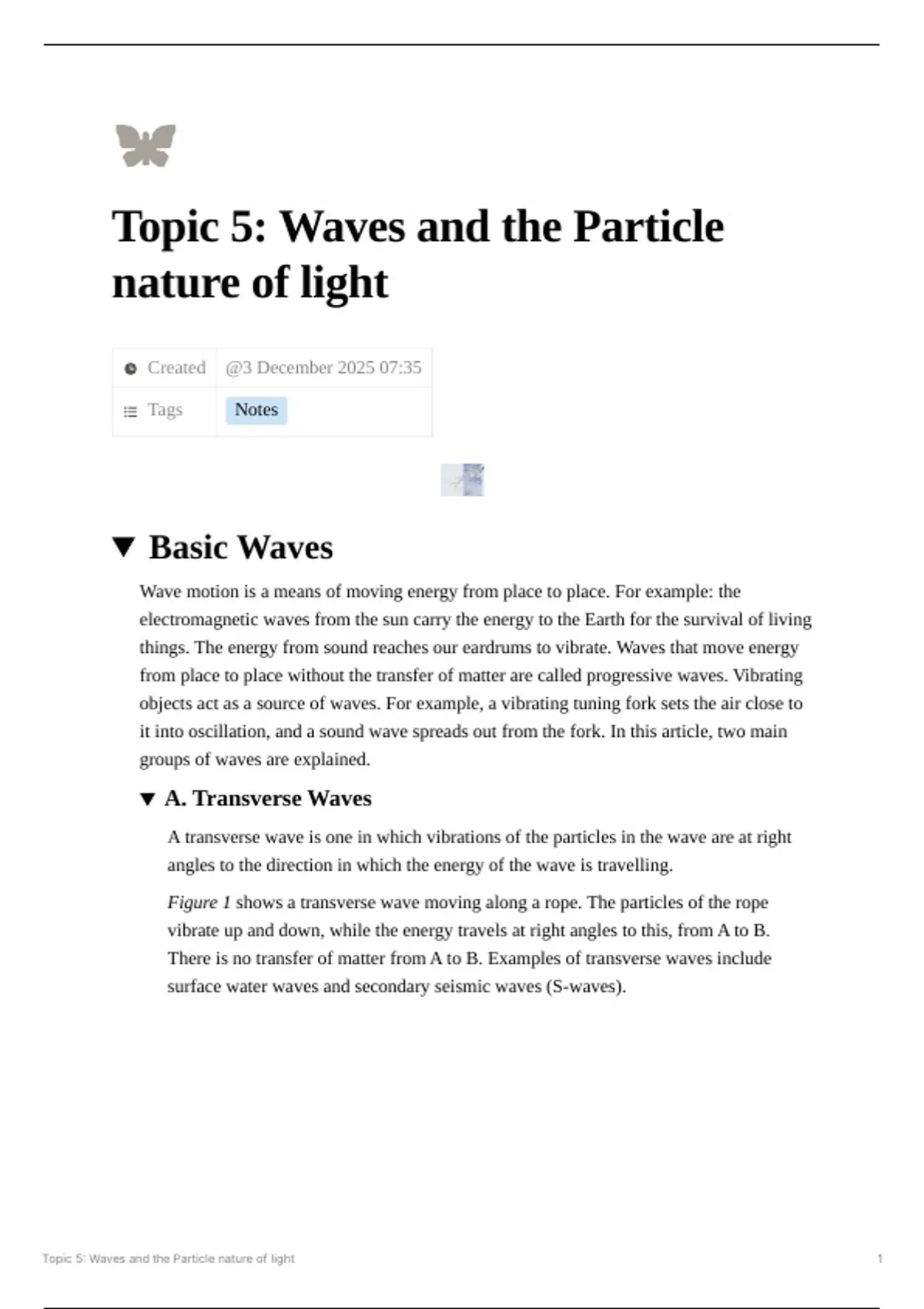 Topic 5: Waves and the Particle