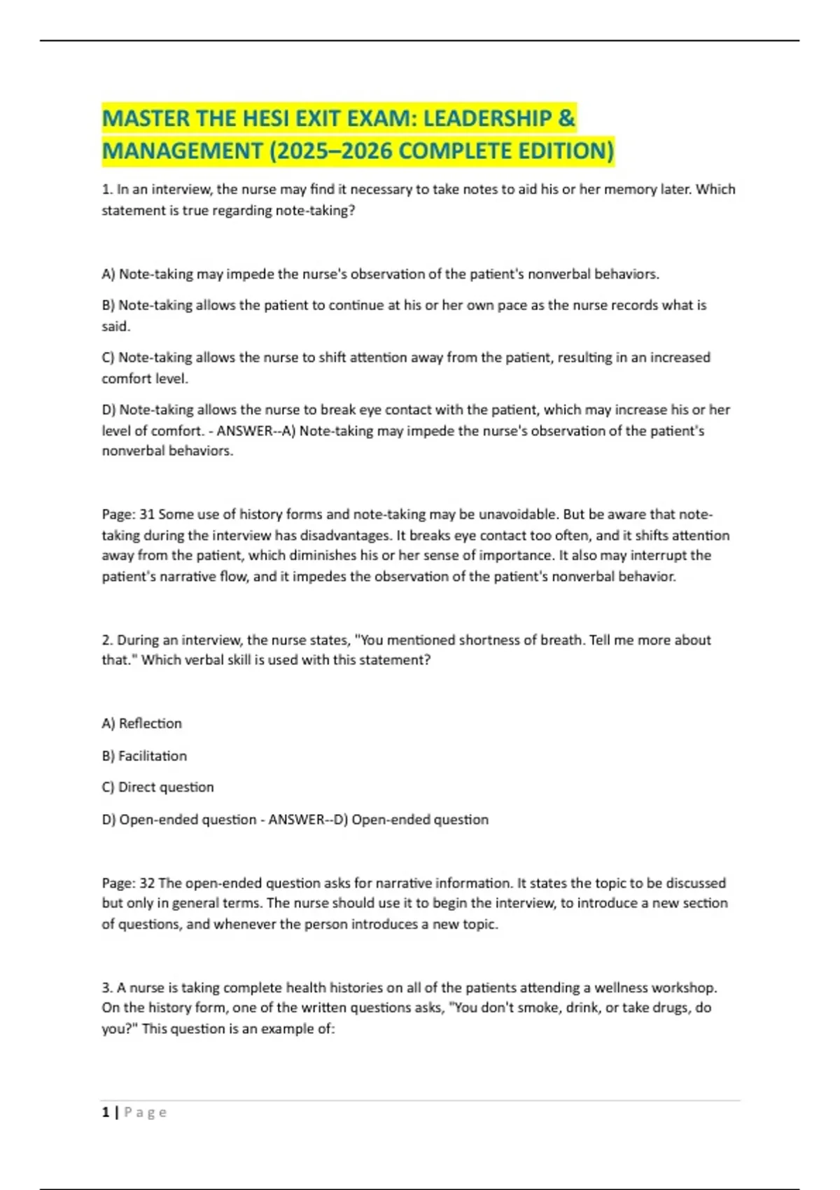 level of comfort. - ANSWER--A) Note-taking may impede the nurse's observation of the patient's