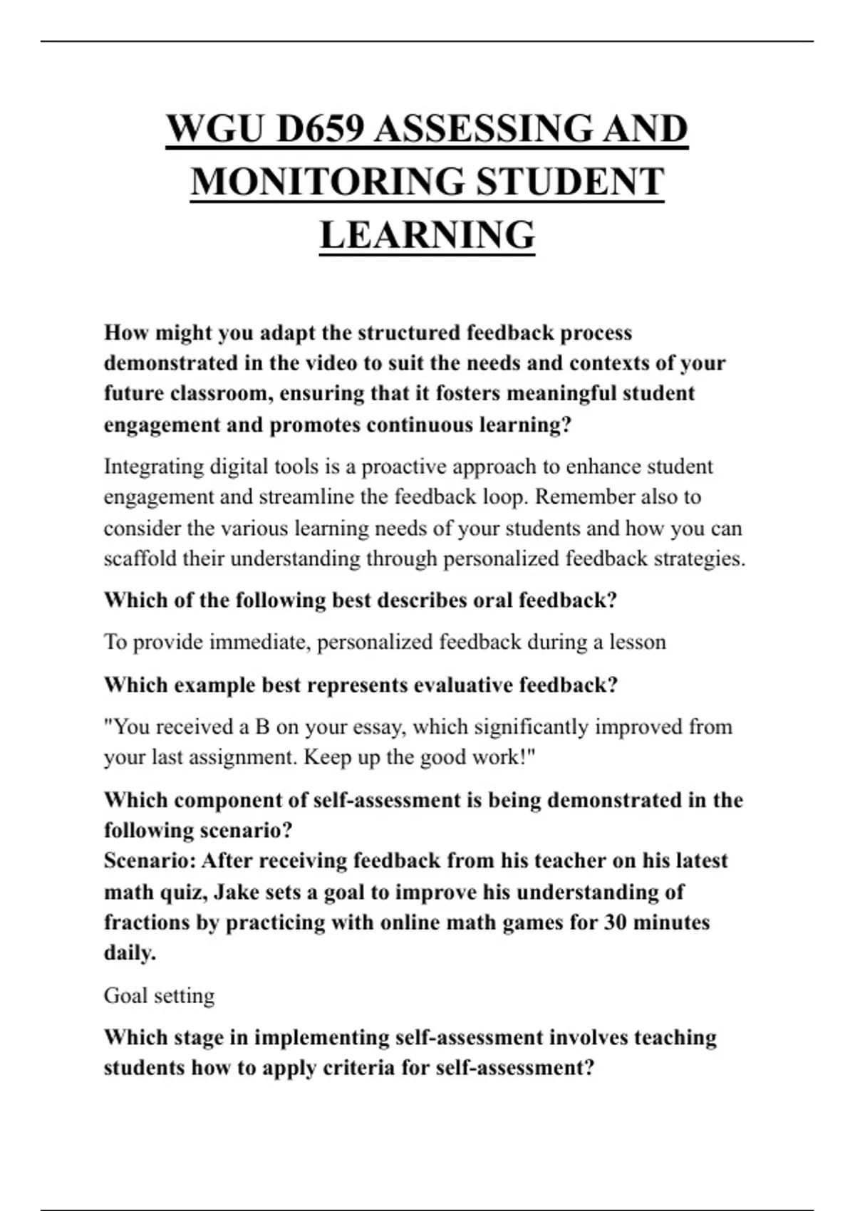 understanding and progress toward learning goals. This formative