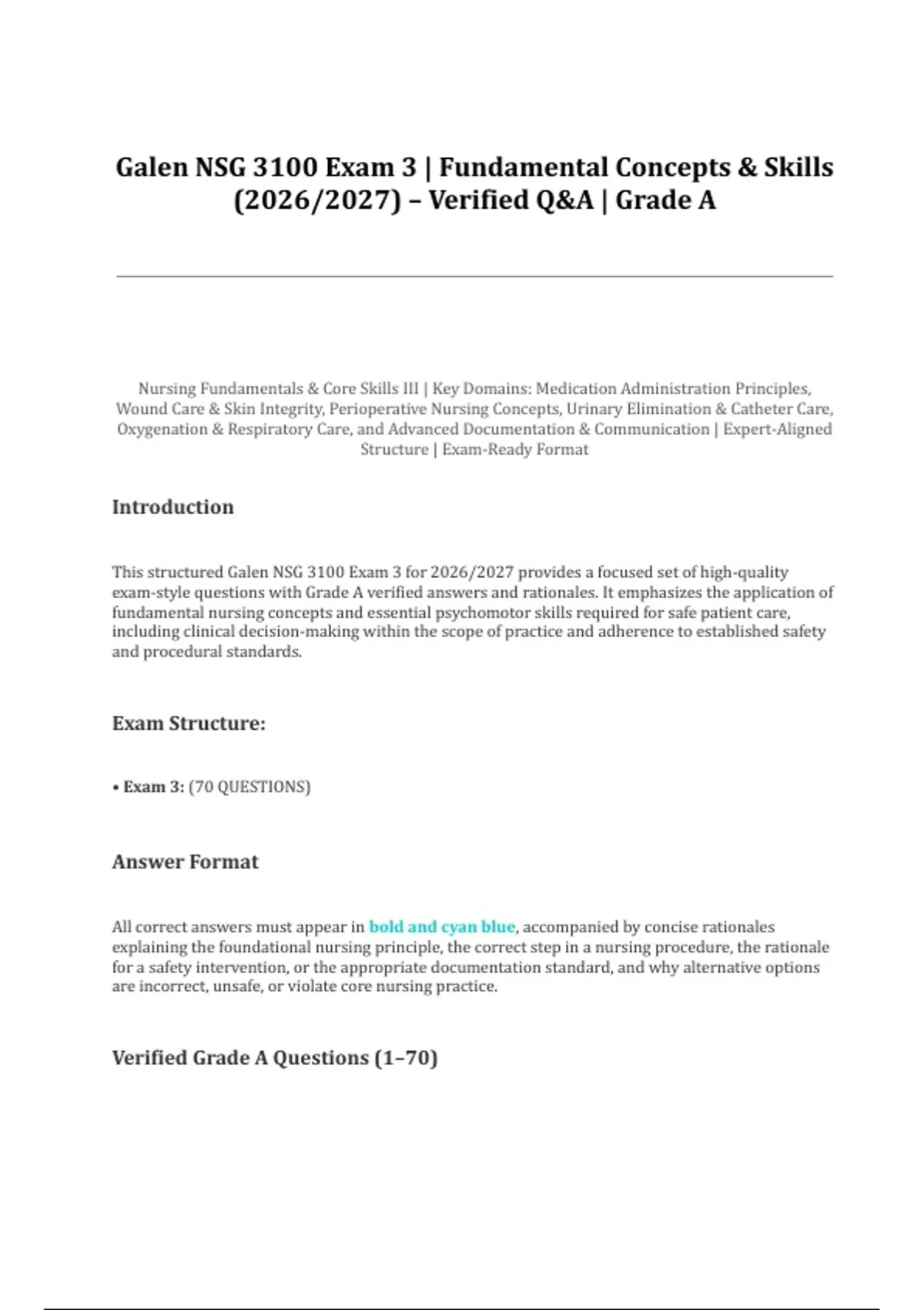 This structured Galen NSG 3100 Exam 3 for 2026/2027 provides a focused set of high-quality