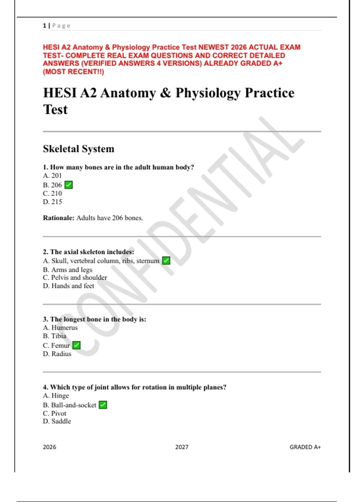 HESI A2 Anatomy & Physiology Practice Test NEWEST 2026 ACTUAL EXAM
