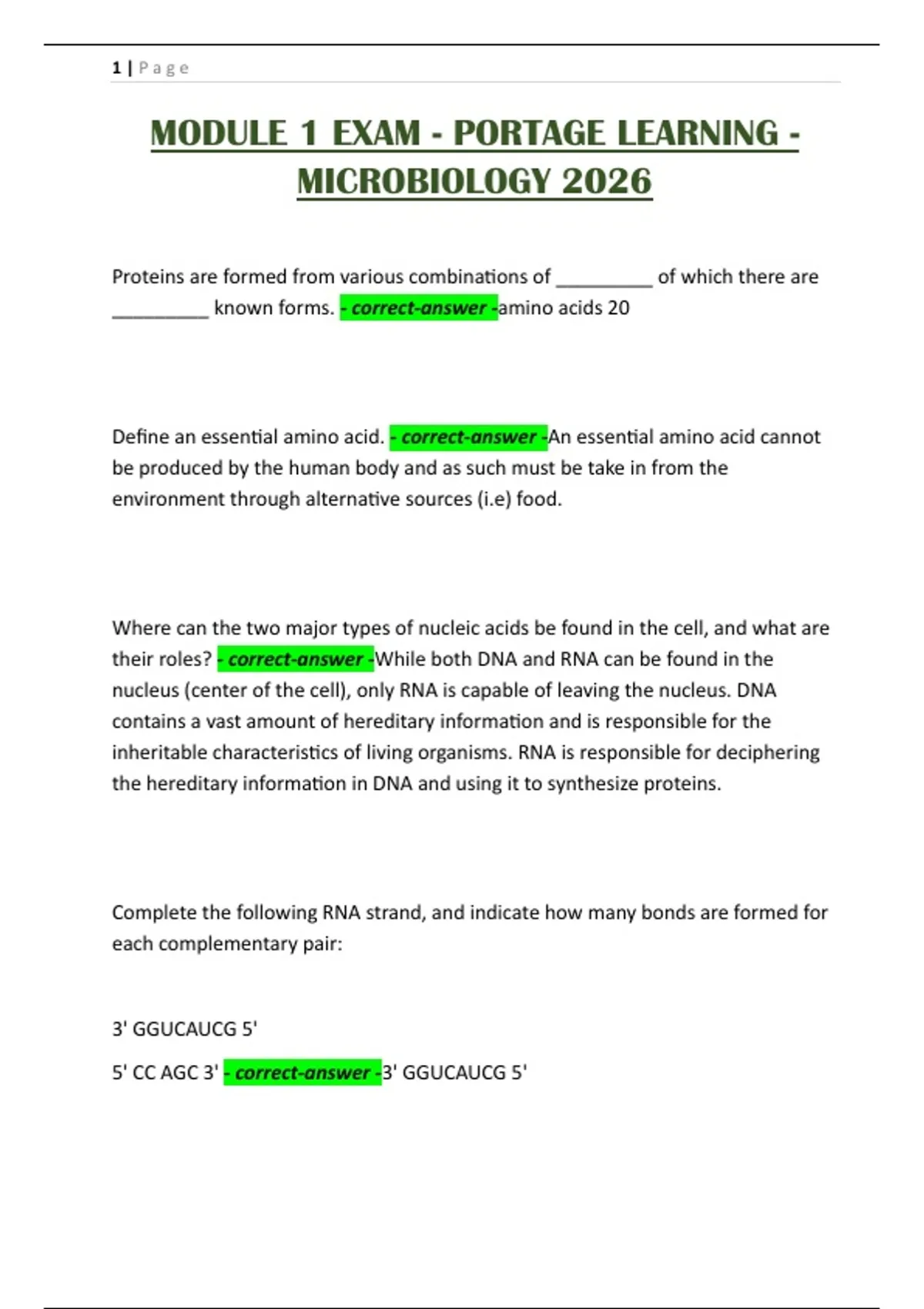 MODULE 1 EXAM - PORTAGE LEARNING - MICROBIOLOGY 2026