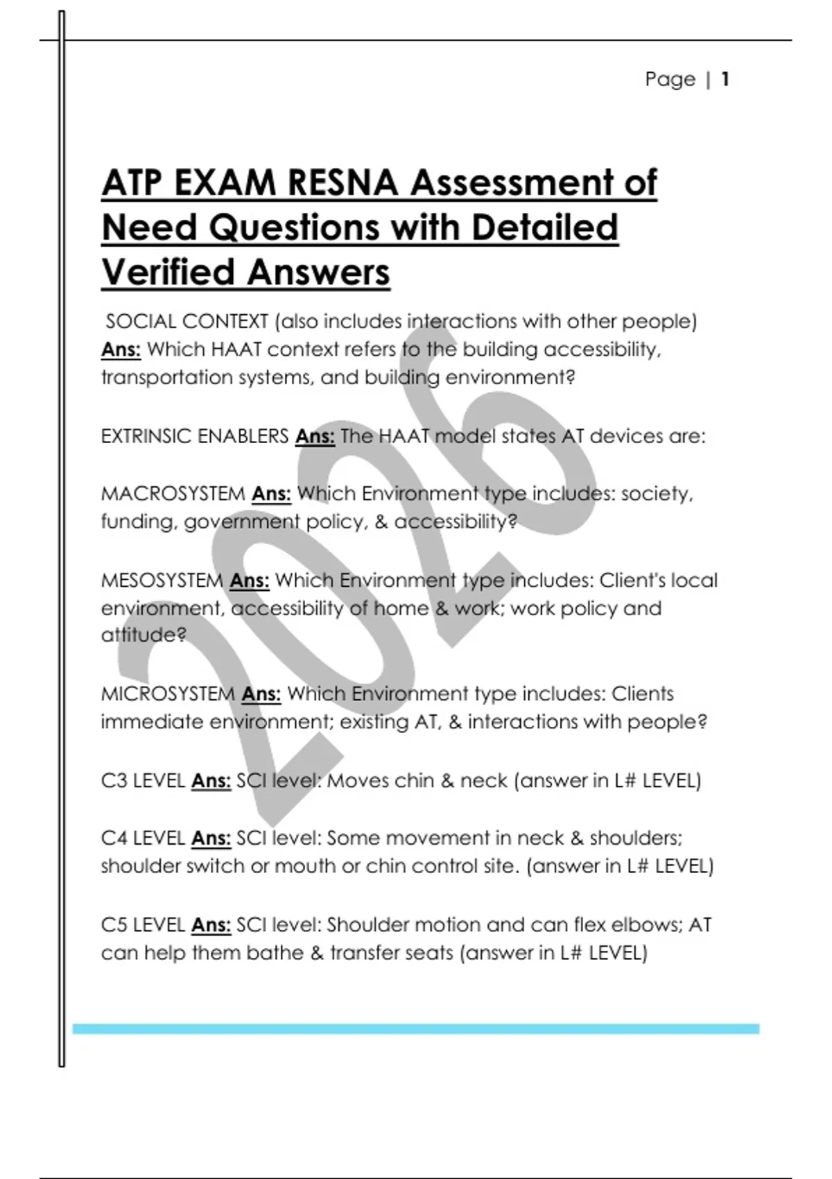 ATP EXAM RESNA Assessment of Need Questions with Detailed Verified AnswersATP EXAM RESNA Assessment of Need Questions with Detailed Verified Answers