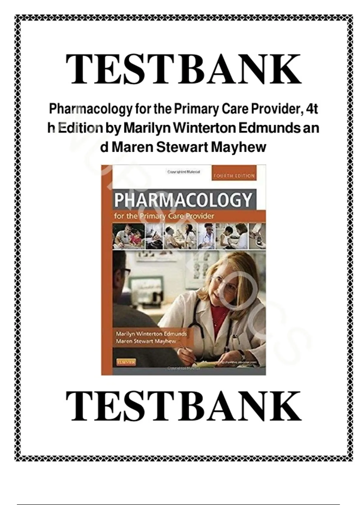Looking for the ultimate study companion to ace your pharmacology exams and clinical practice? This official Test Bank for Pharmacology for the Primary Care Provider, 4th Edition by Marilyn Winterton Edmunds and Maren Stewart Mayhew is exactly what you need. Designed specifically for nurse practitioners (NPs), physician assistants (PAs), and other advanced practice providers, it provides comprehensive, chapter-by-chapter review to ensure mastery of prescribing principles and drug therapies. What’s Inside: All 73 Chapters Covered – From foundations of prescriptive authority to drug monographs for every major system. Over 350+ Multiple-Choice Questions – With detailed rationales and cognitive level indicators (Remembering, Applying, Analyzing). Real-World Clinical Scenarios – Prepares you for board exams and day-to-day decision-making. Key Topics Include: Prescriptive authority & role implementation Pharmacokinetics, pharmacodynamics, and special populations (geriatrics, pediatrics, pregnancy) Drug monographs by system: Cardiovascular, Respiratory, GI, CNS, Psychotropic, Endocrine, Antimicrobials, and more Evidence-based prescribing, patient education, and safe medication practices Why Choose This Test Bank? Build Confidence – Practice with questions that mirror the format and difficulty of certification exams. Understand Rationales – Each answer includes clear explanations and textbook references for deeper learning. Save Study Time – Focused review of high-yield content organized by the trusted textbook structure. Perfect for Self-Assessment – Identify weak areas and track your progress before the big test. Whether you're a student preparing for exams or a clinician refreshing your knowledge, this test bank is an essential tool for success. Don't just memorize—understand and apply pharmacology with confidence. Get your copy today and take the next step toward mastering primary care pharmacology!