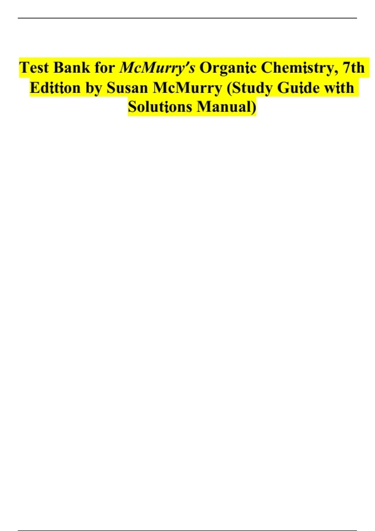 Test Bank for McMurry’s Organic Chemistry 7th Edition by Susan McMurry | Complete Chapter Practice Questions with Study Guide and Solutions Manual