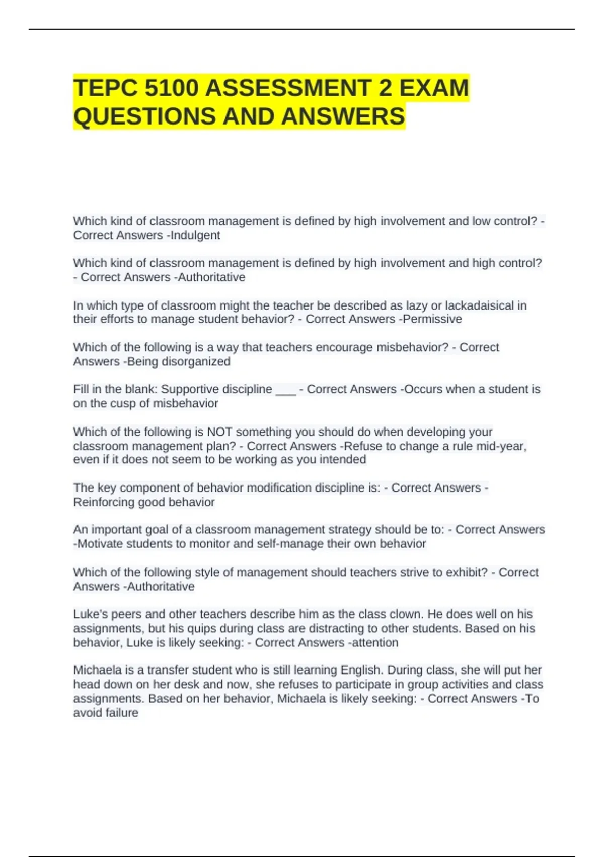 assignments. Based on her behavior, Michaela is likely seeking: - Correct Answers -To