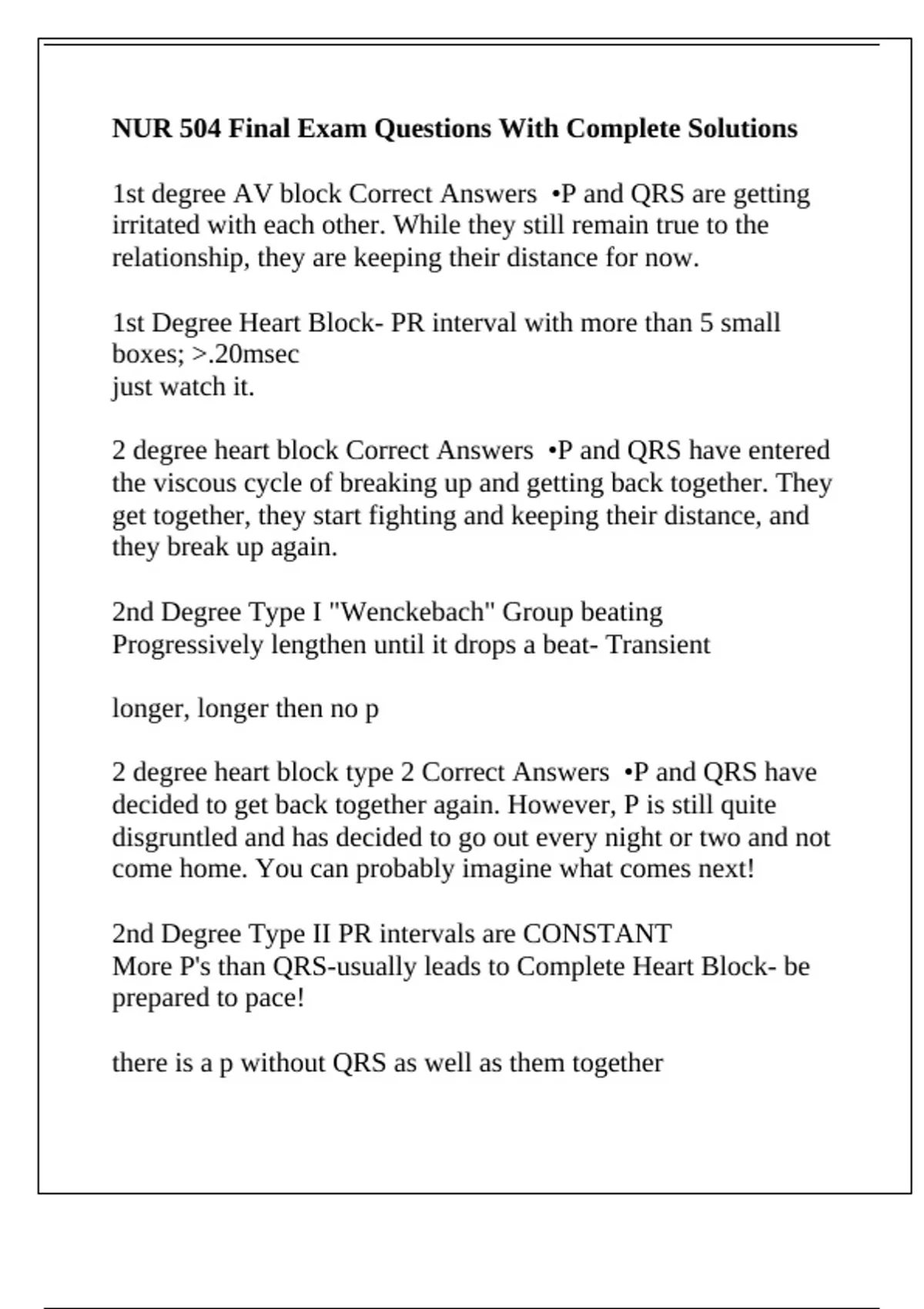 2 degree heart block type 2 Correct Answers •P and QRS have