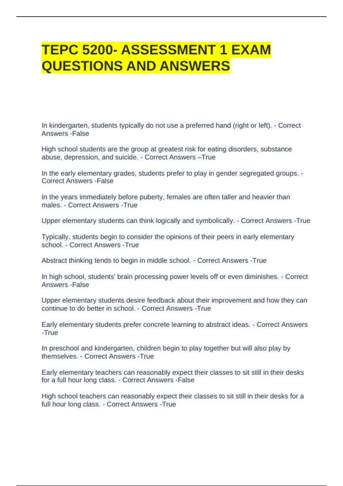 TEPC 5200- ASSESSMENT 1 EXAM QUESTIONS AND ANSWERS