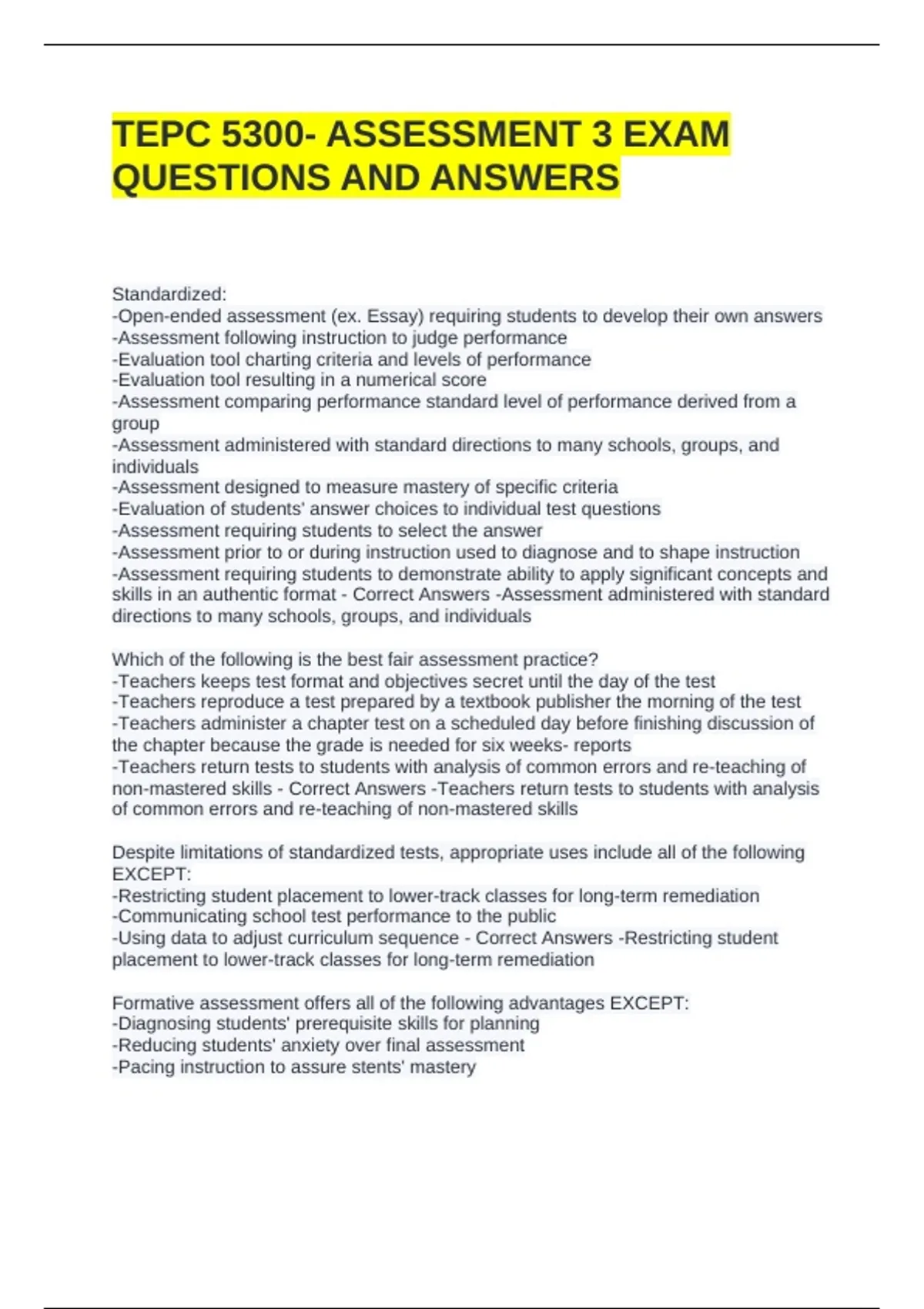 TEPC 5300- ASSESSMENT 3 EXAM