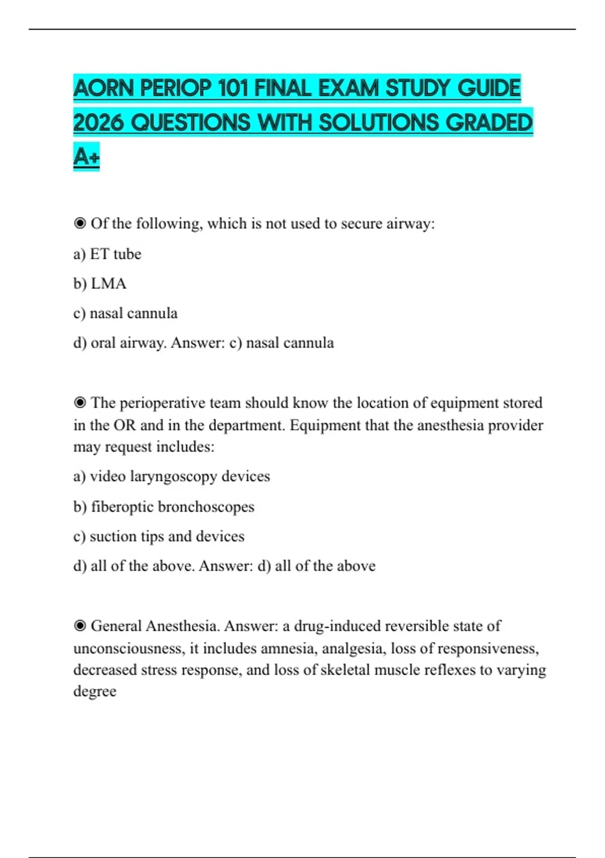 AORN PERIOP 101 FINAL EXAM STUDY GUIDE 2026 QUESTIONS WITH SOLUTIONS GRADED A+