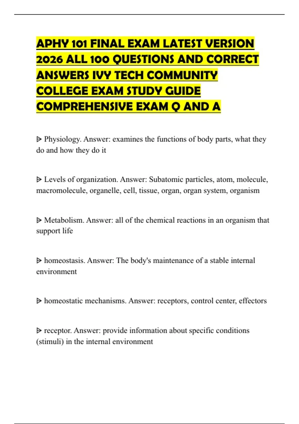 ANSWERS IVY TECH COMMUNITY