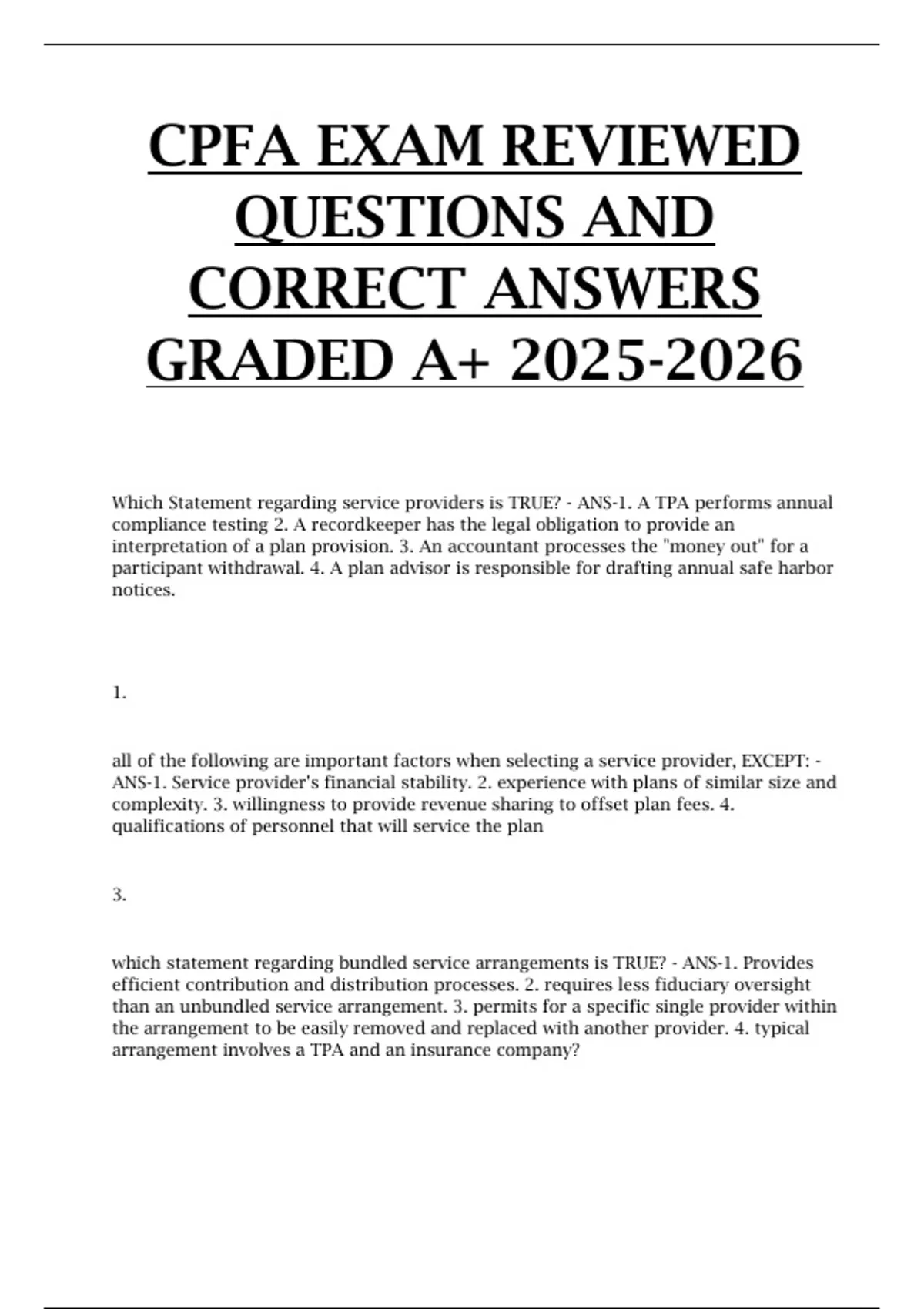 Which Statement regarding service providers is TRUE? - ANS-1. A TPA performs annual
