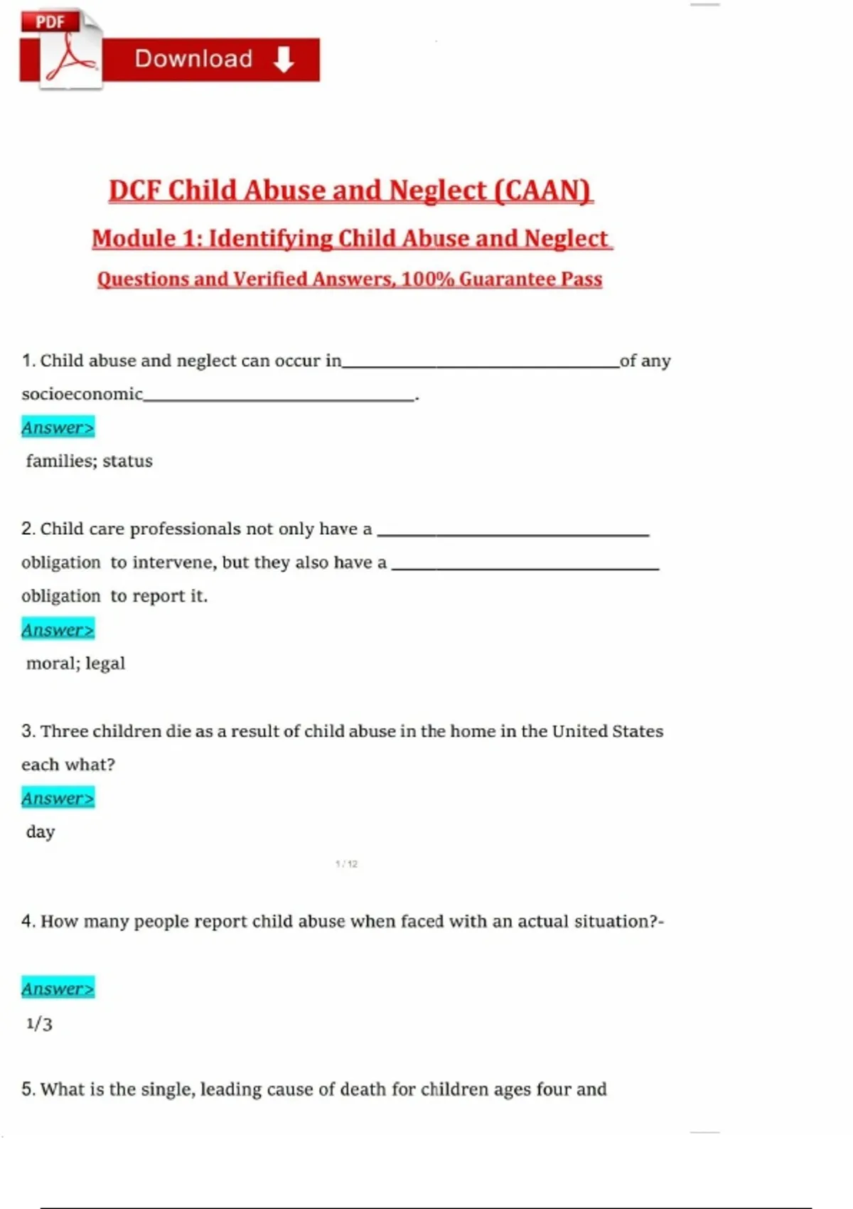 DCF Child Abuse and Neglect (CAAN) Module 1- Identifying Child Abuse and Neglect Latest Guide!!.pdf