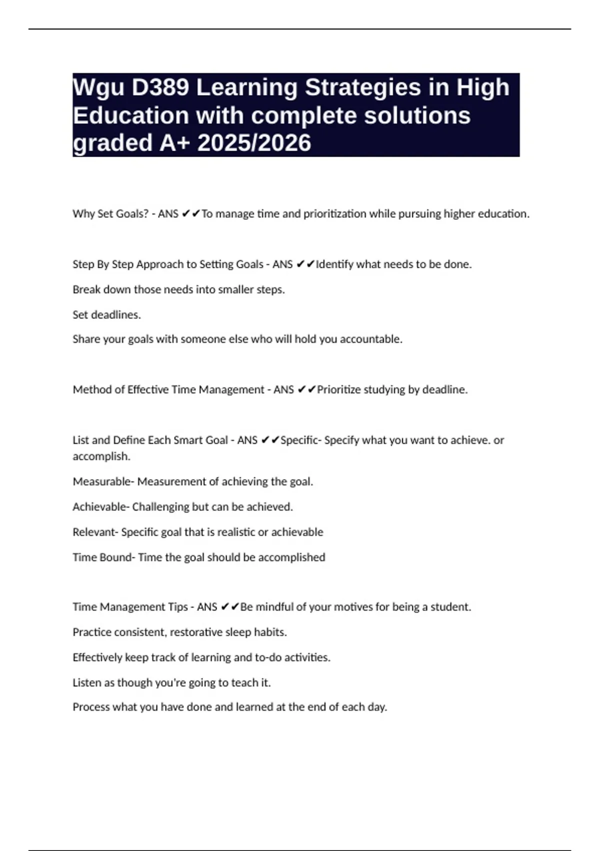 Time Management Tips - ANS ✔✔Be mindful of your motives for being a student.