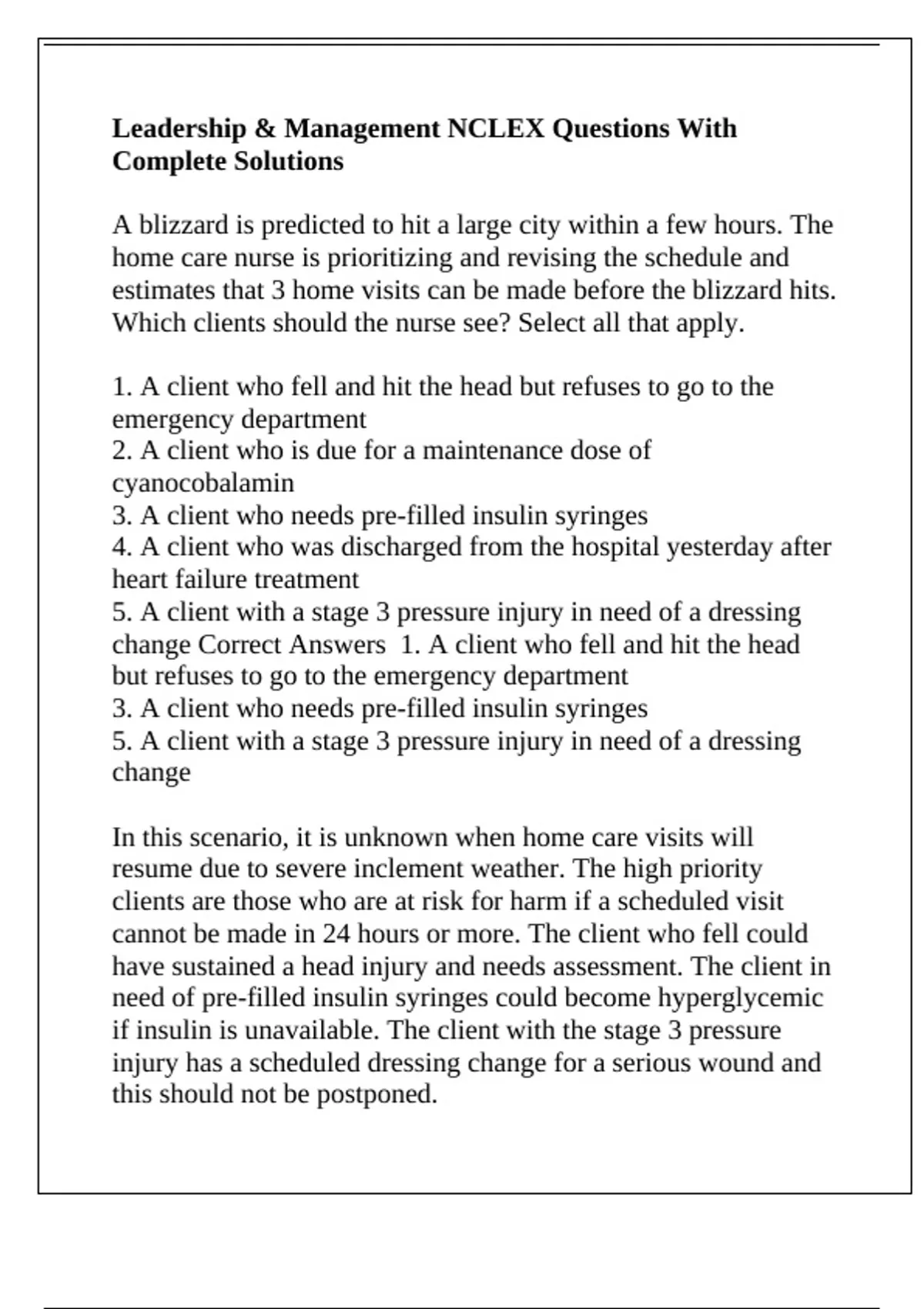 5. Unlicensed assistive personnel with a cold Correct Answers