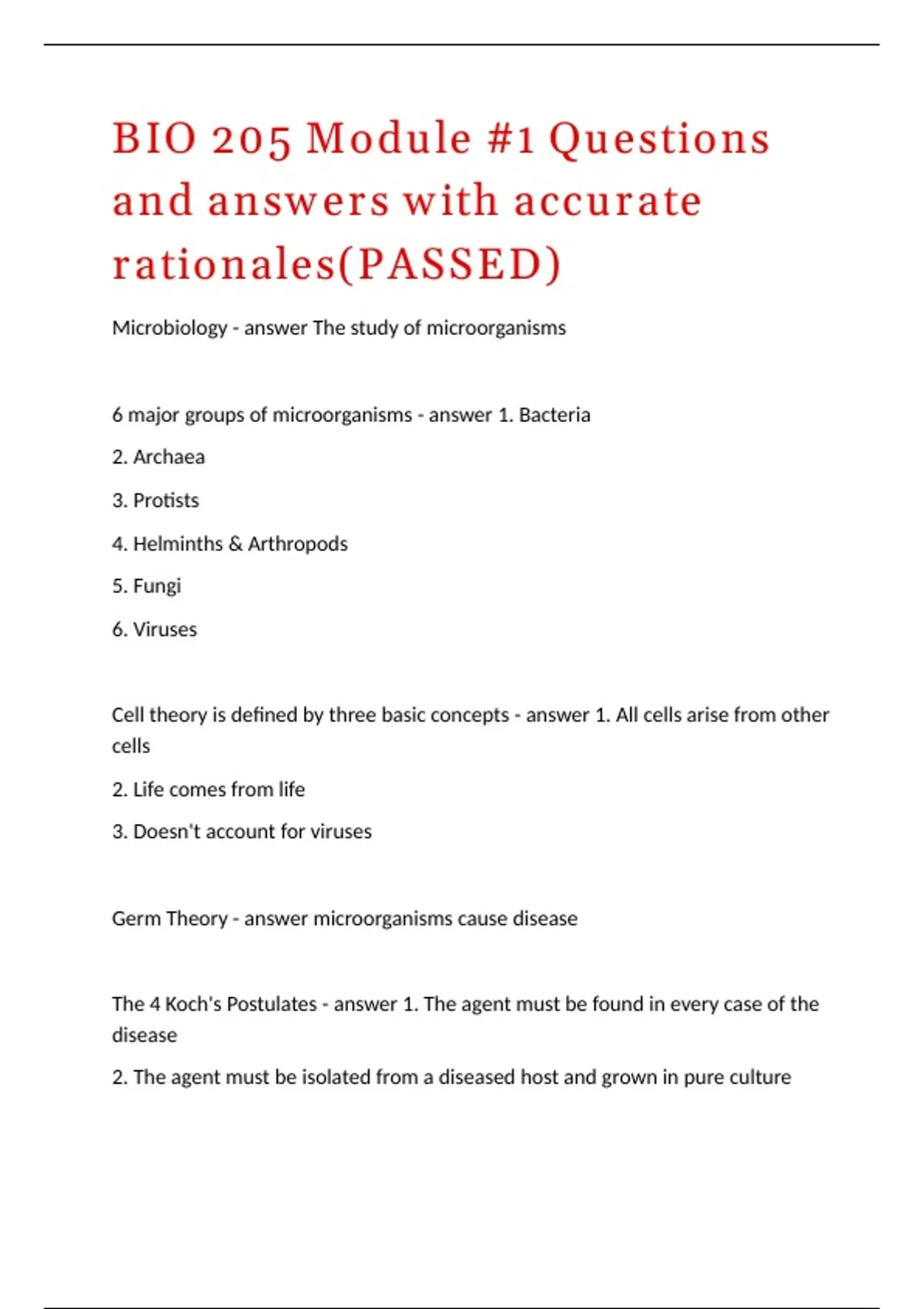 BIO 205 Module -1 Questions and answers with accurate rationales(PASSED).