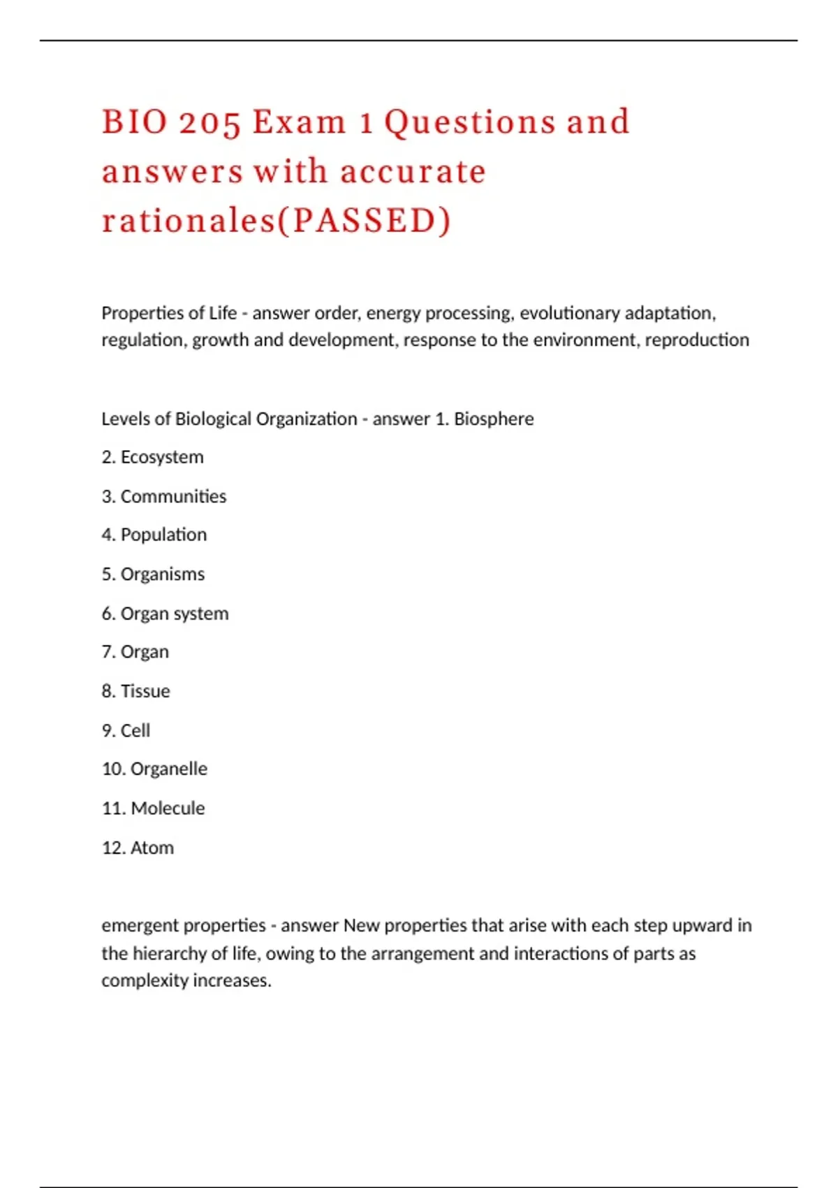 BIO 205 Exam 1 Questions and answers with accurate rationales(PASSED).