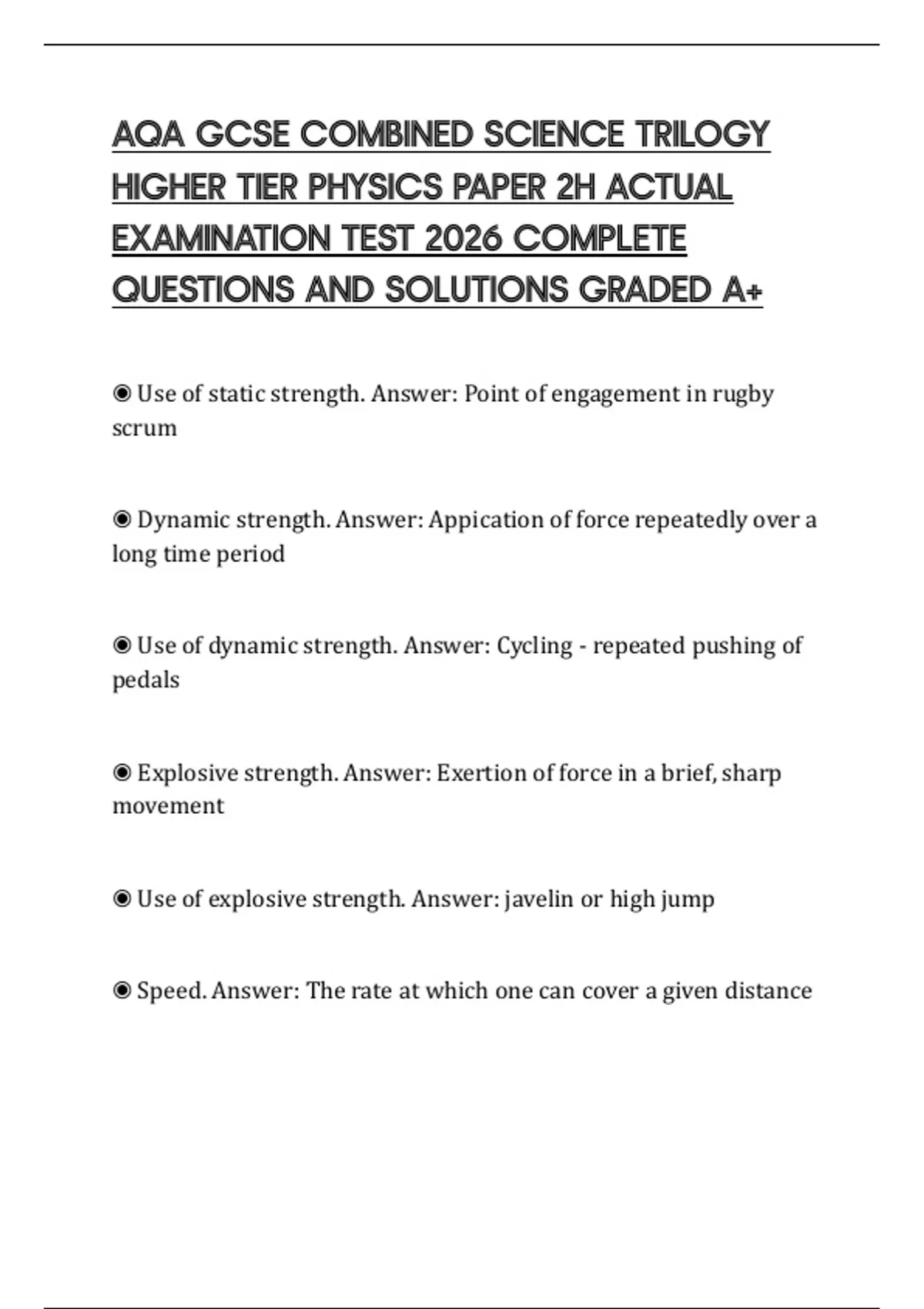 HIGHER TIER PHYSICS PAPER 2H ACTUAL