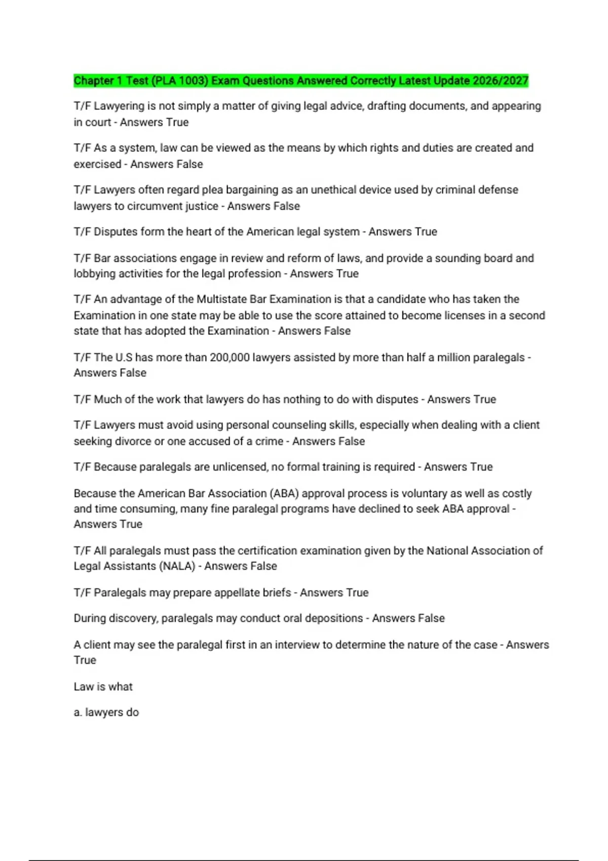 Legal Assistants (NALA) - Answers False